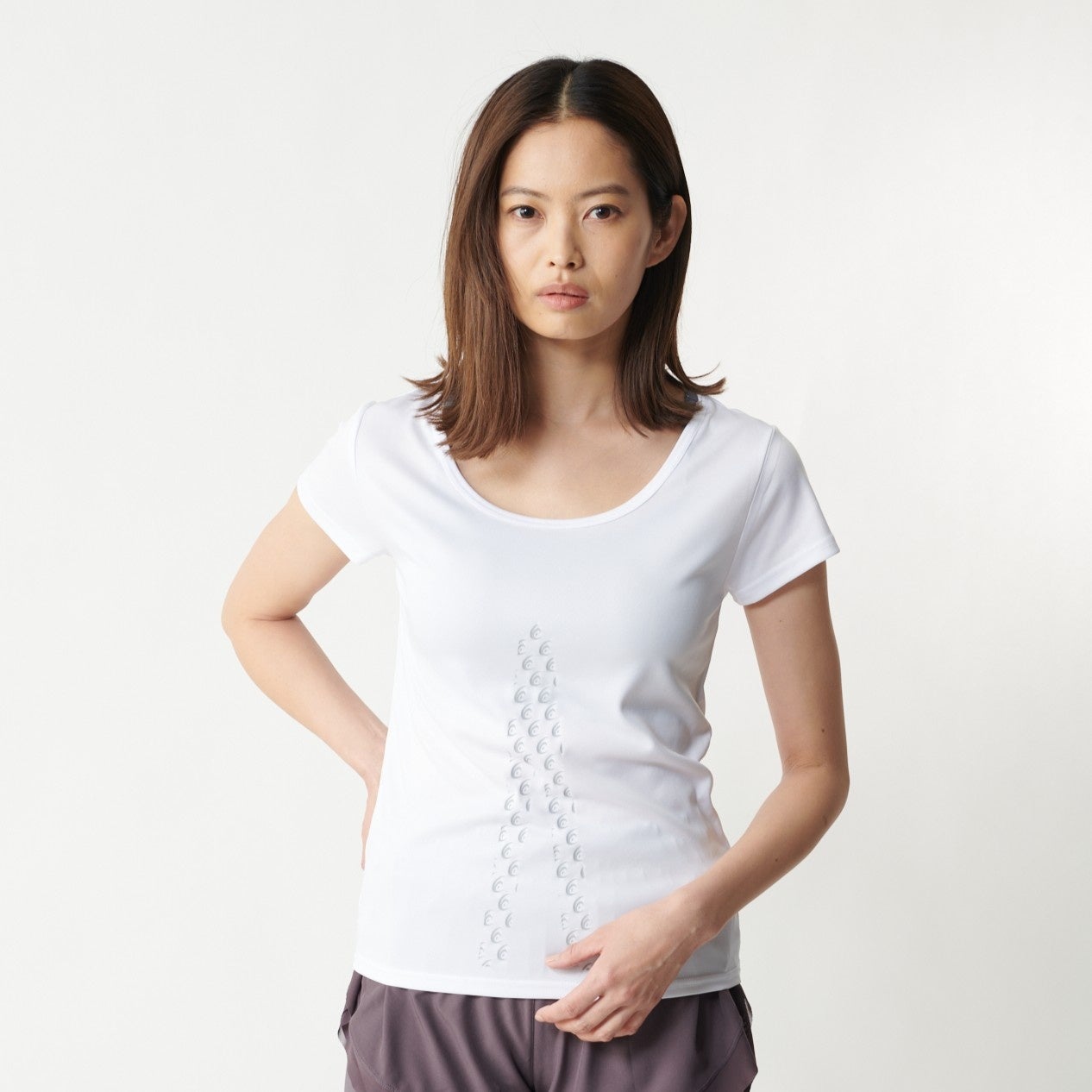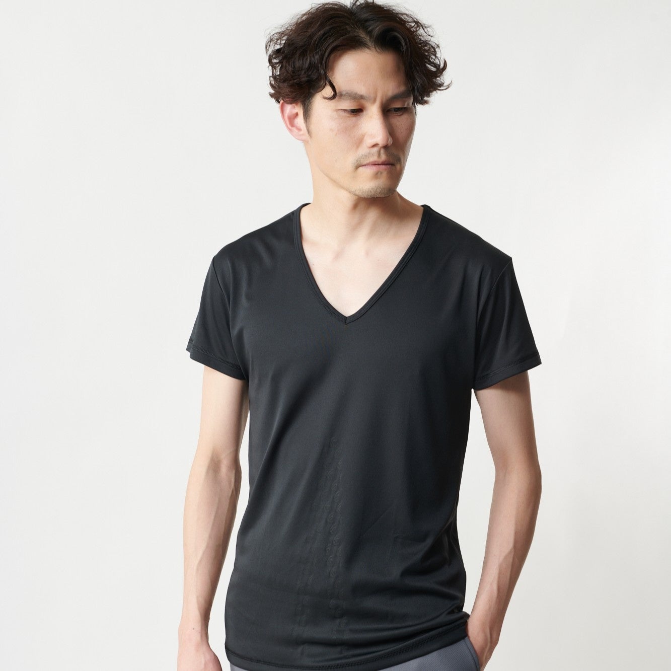 女性用サイズ。深めのUネック。二分袖タイプ。