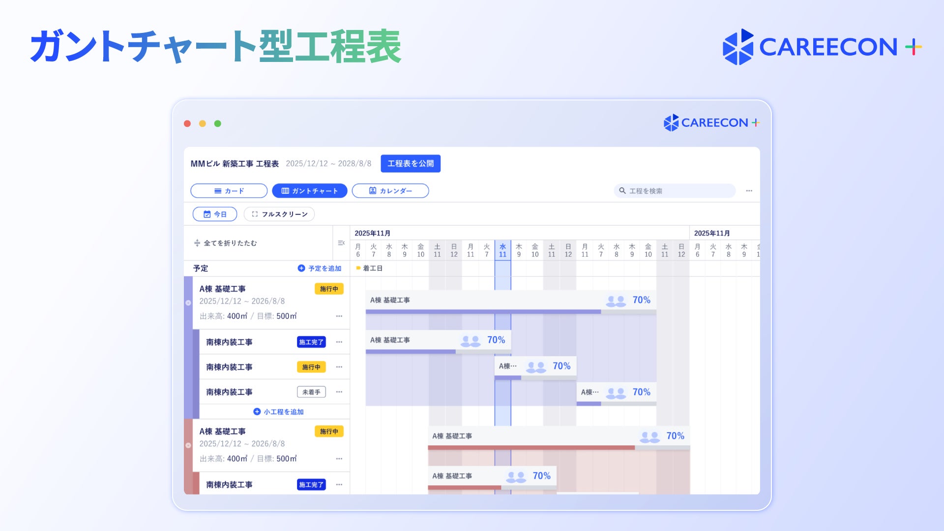 CAREECON Plus 施工管理機能の「工程表」を大幅アップデート