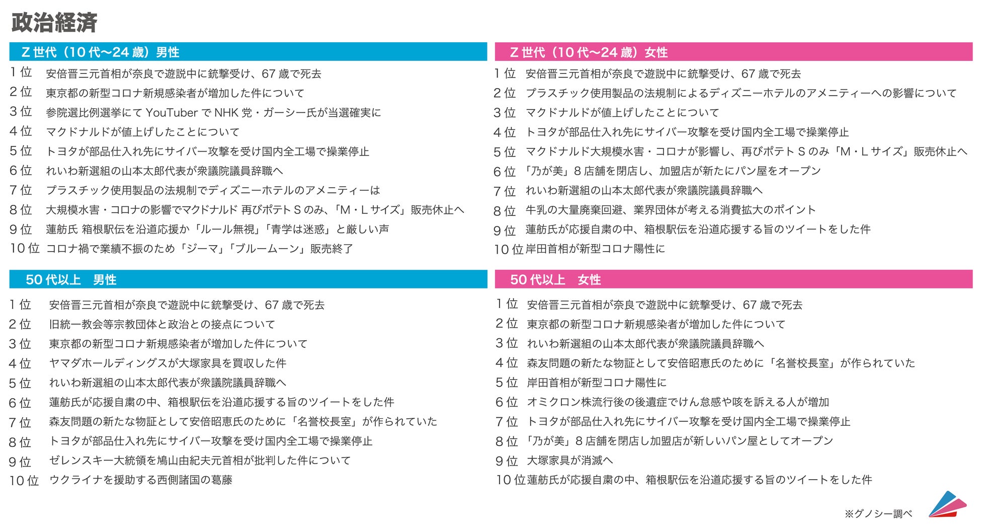 2022年も残り僅か!Z世代&50代以上が⾒た年間ニュースランキング政治経済・スポーツ・グルメ等6項⽬を発表