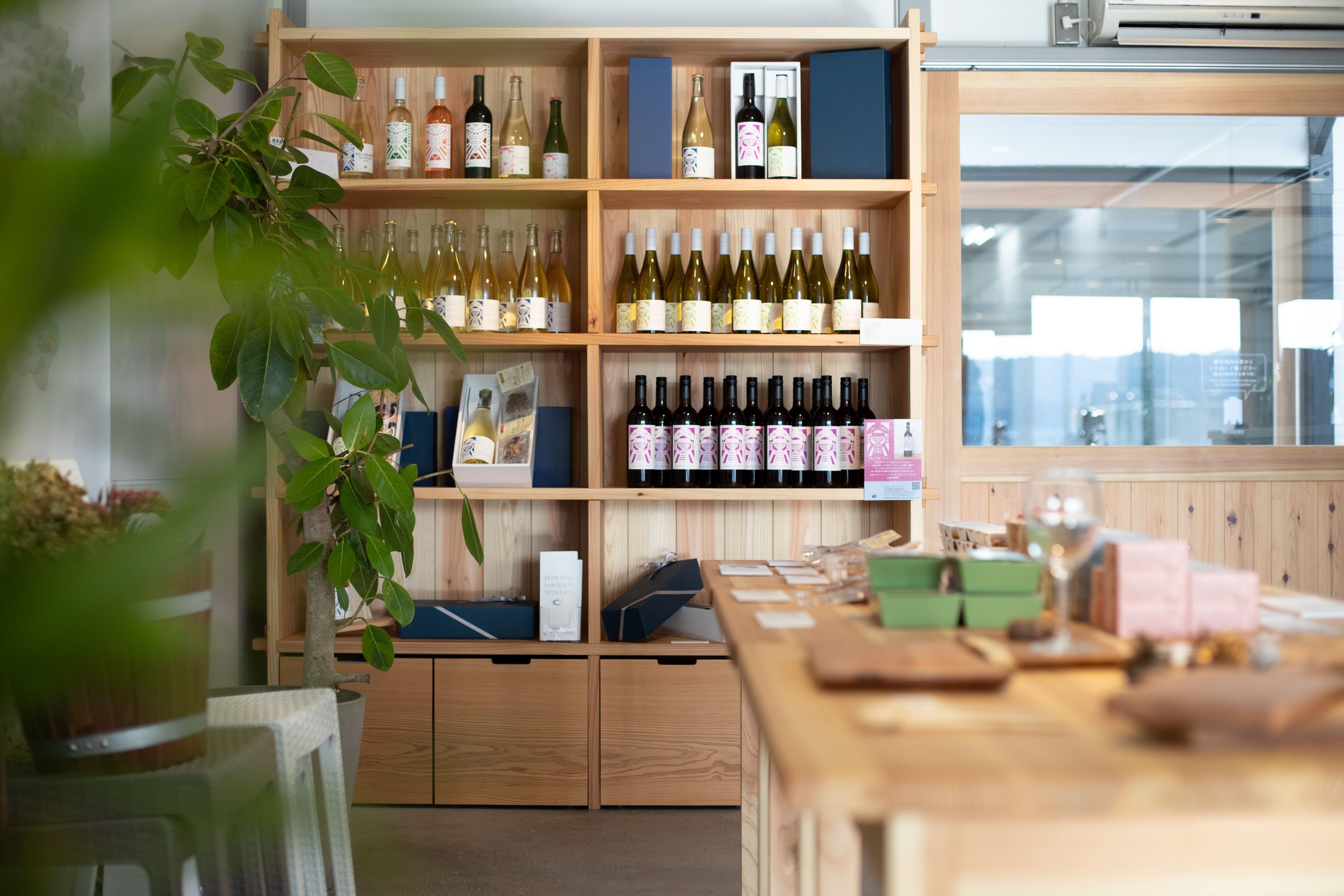 町の特産である牡蠣やタコなどの海産物に合うワインを販売、提供。