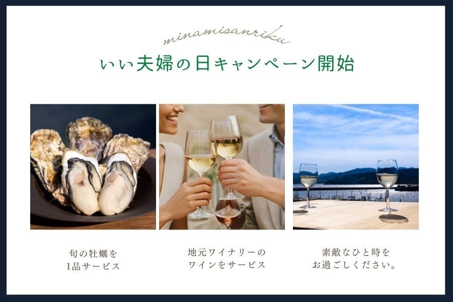 「いい夫婦の⽇(11月22日)」南三陸町の対象11施設でお得にワインと牡蠣を楽しむ宿泊プラン販売開始!