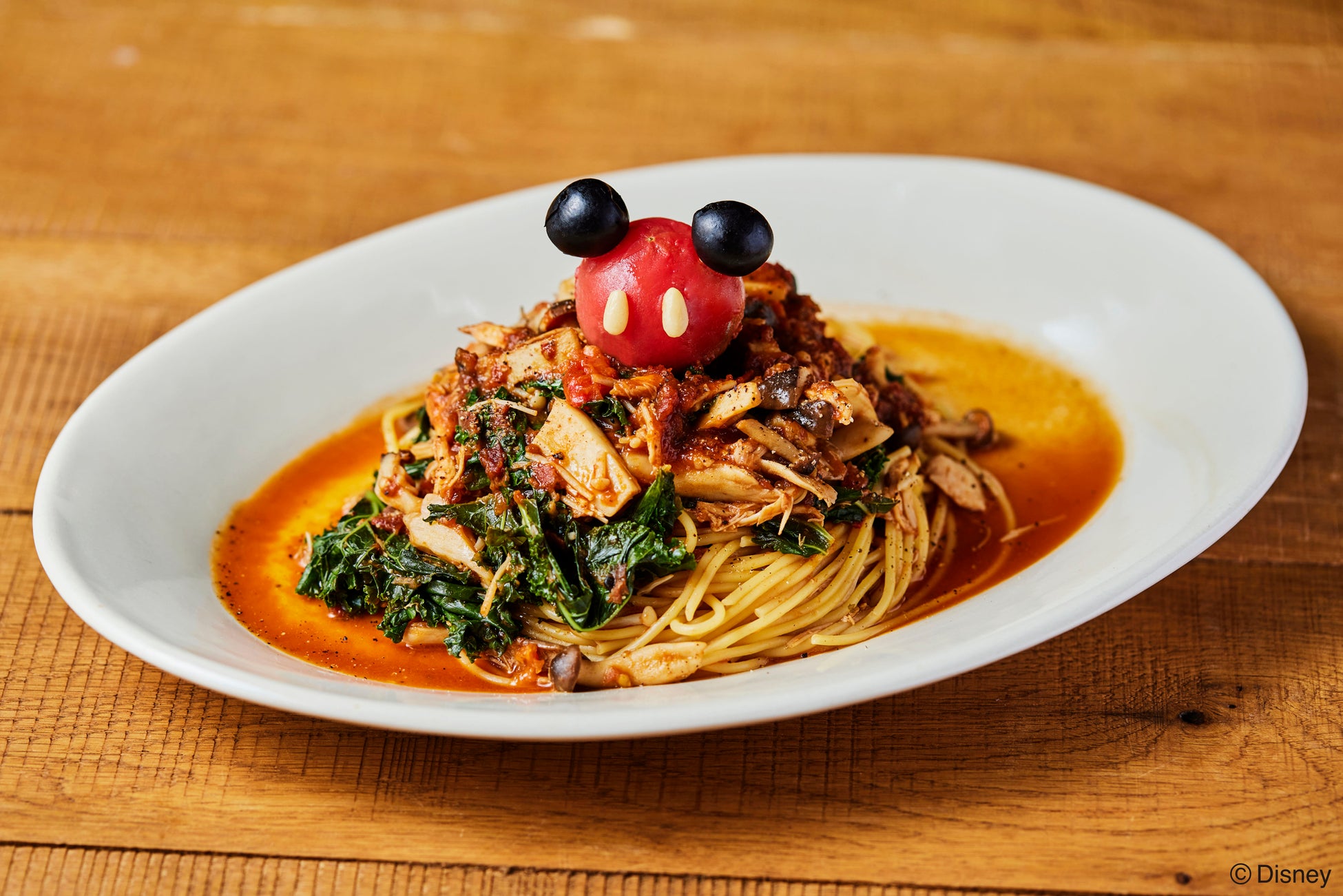 苦味の少ないケールにヘルシーなケール鶏胸肉、たっぷりのきのこを組み合わせたトマトソーススパゲッティー。目にも楽しいトマトコンフィがアクセントです。