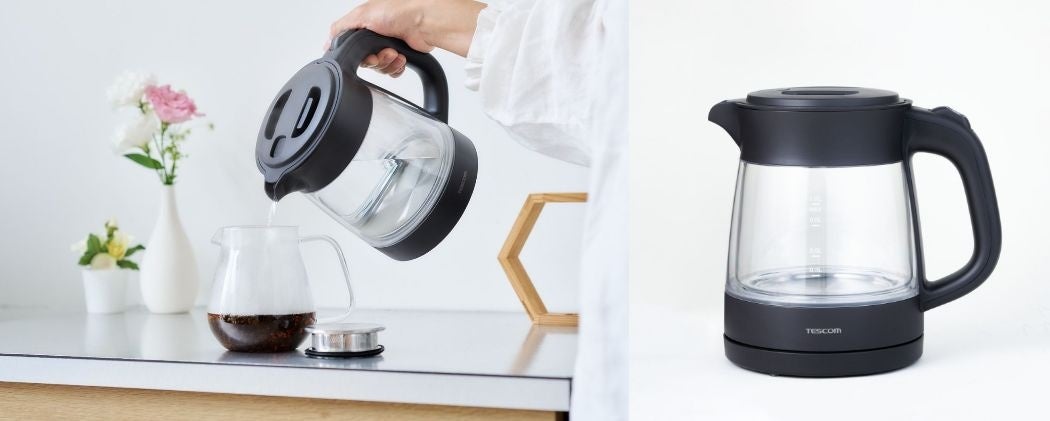 テスコム電機株式会社(本社:東京都千代田区、代表取締役社長:葉田 順治、以下テスコム)は、耐熱ガラス製でにおいや味移りが少なく、飲み物本来のおいしさをそのまま楽しめる「電気ガラスケトル TKG45A-K」を11月中旬より新発売いたします。