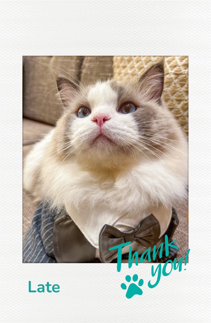 ※猫ちゃんの体調や当日の状況により、衣装の着用や登場をお休みする場合がございます。予めご了承ください。