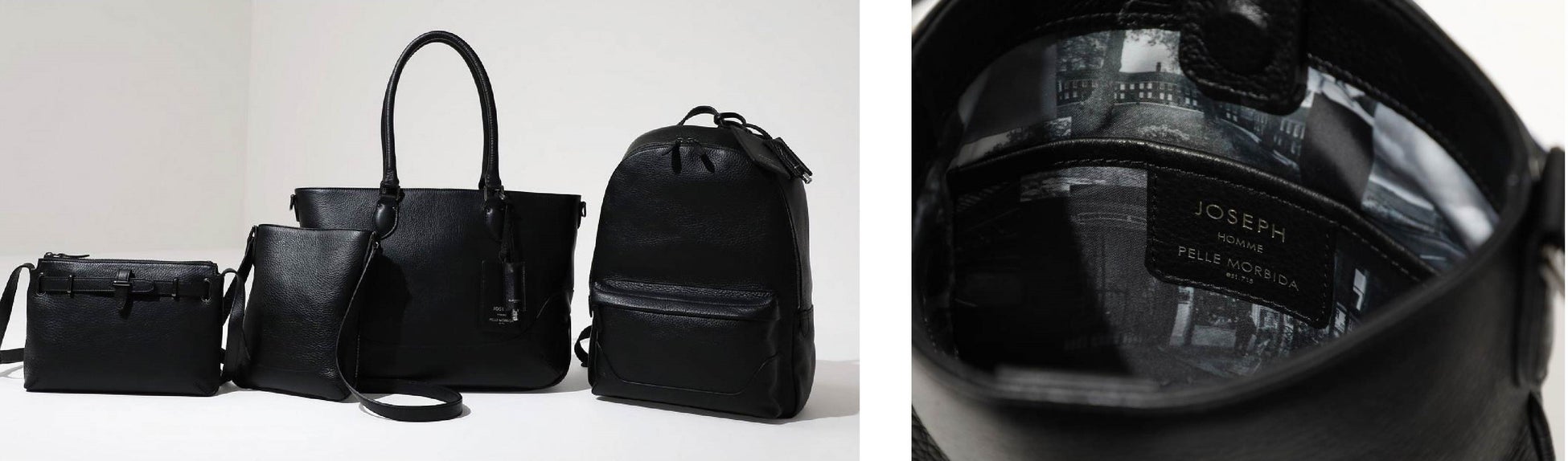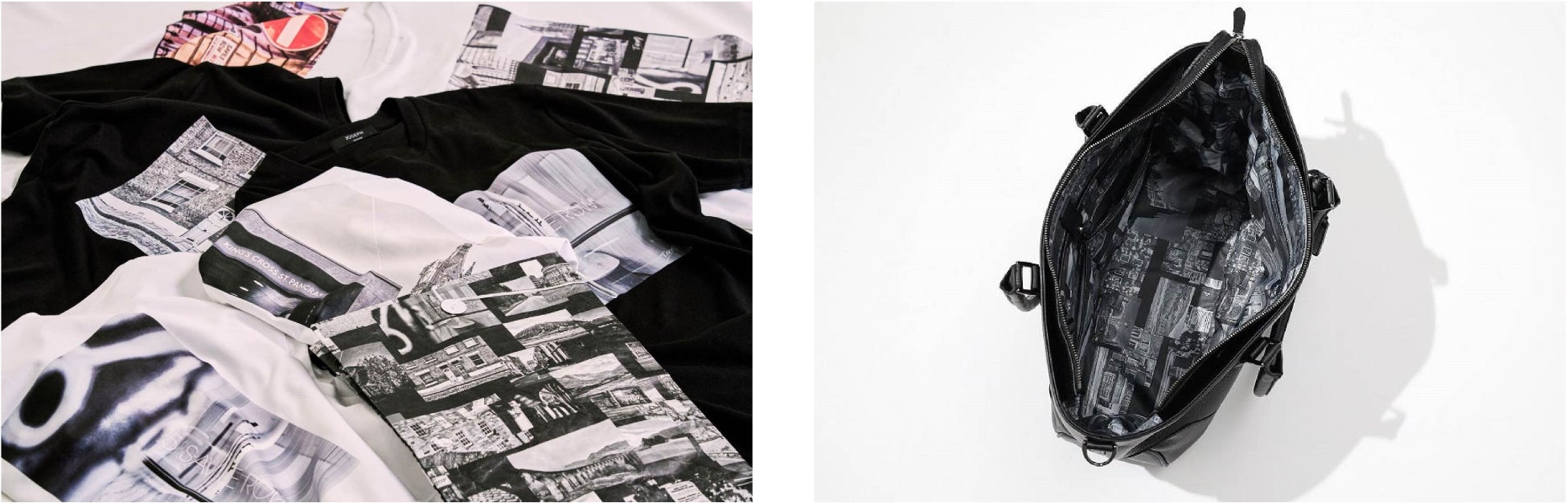 『JOSEPH HOMME』が、日本製ならではのきめ細やかな機能性のバッグを展開するPELLE MORBIDAとの別注アイテムに、Tagawa氏が撮影された写真のコラージュをプリントし、バッグの裏地にあしらったショルダーバッグ(2型)、トートバッグ、バッグパックを販売。国産のシュリンクレザーを採用し、手の込んだシボ加工により見た目に高級感を生み出すだけではなく、表面を触った心地の良さに定評のある逸品です。