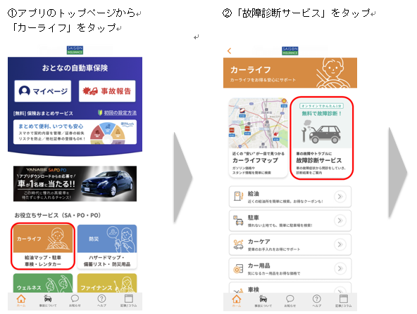 当社は従来の保険だけでなく、サービスの面からも当社のミッションである「お客さまの豊かな人生の実現をサポートし続ける存在」の実現に向けて取り組んでいます。今般、当社のお客さま向けの調査において、ちょっとした車の不調はまずは自ら原因を調べたいというニーズがあることを受け、車の不調の自己解決をサポートするサービスとして「SA・PO・PO無料オンライン故障診断」をリリースしました。