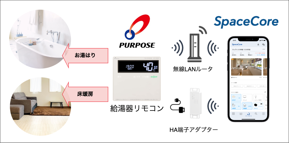 株式会社アクセルラボ(本社:東京都渋谷区、 代表取締役:小暮学、 以下当社)は、スマートホームサービス「SpaceCore(スペース・コア)」が2022年3月28日よりパーパス株式会社(本社:静岡県富士市、代表取締役 社長:髙木 裕三、以下パーパス社)の給湯器・床暖房と連携することをお知らせいたします。これにより、利用者は「SpaceCore」アプリからパーパス社の給湯器を操作することが可能になります。本連携は、他社の住宅設備やスマートホームデバイスと連携・協業をおこなう当社プログラム「Works With SpaceCore」の一つとなります。