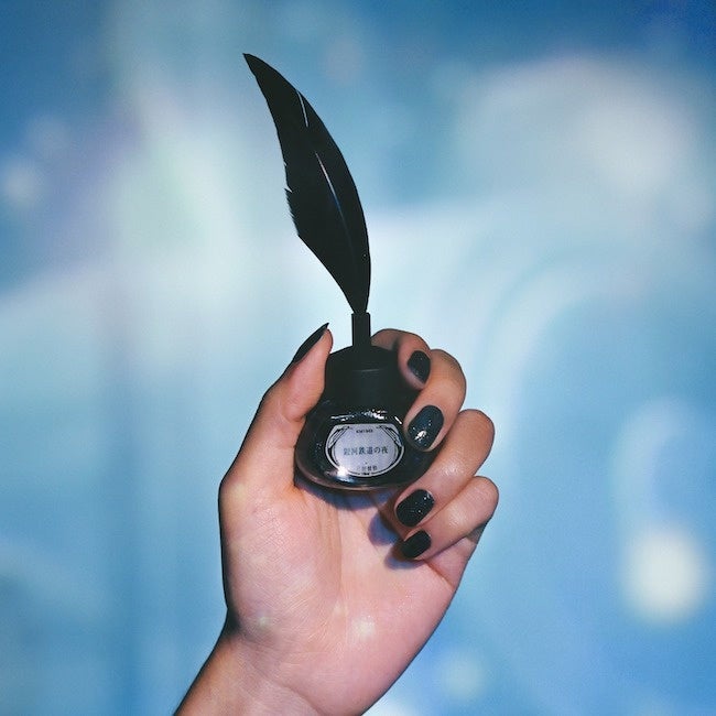 羽根ペンを模したボトルで、ネイルを塗っている姿が文章を綴っているよう。他にはないようなニュアンスのあるカラー展開です。ストーリーが込められたネイルの名前やカラーにご注目。