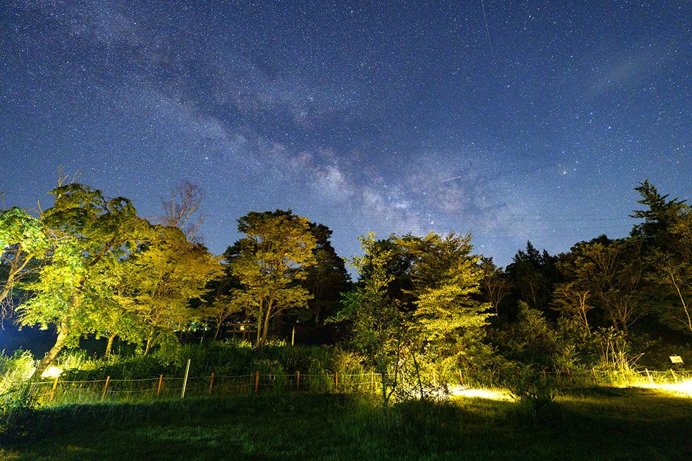 星空観賞に適した場所です。環境省が実施する全国星空継続観察で、「星の観察に適していた場所」の第一位(平成18年)に選ばれた聖地で美しい星空をお楽しみいただけます。パーク内には、