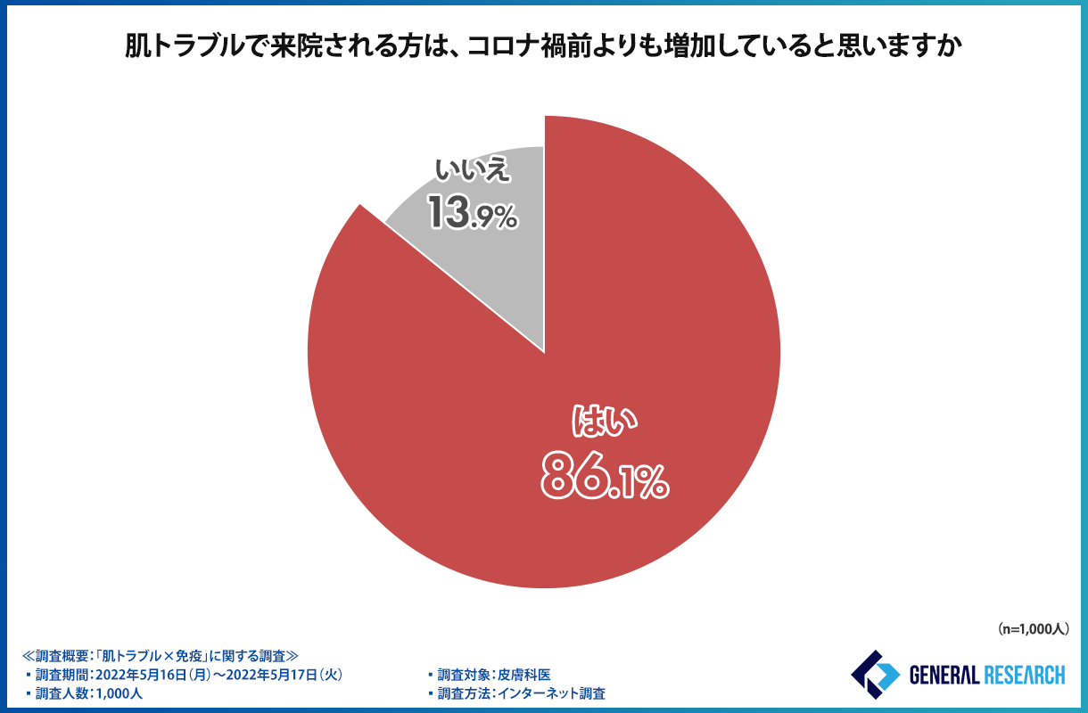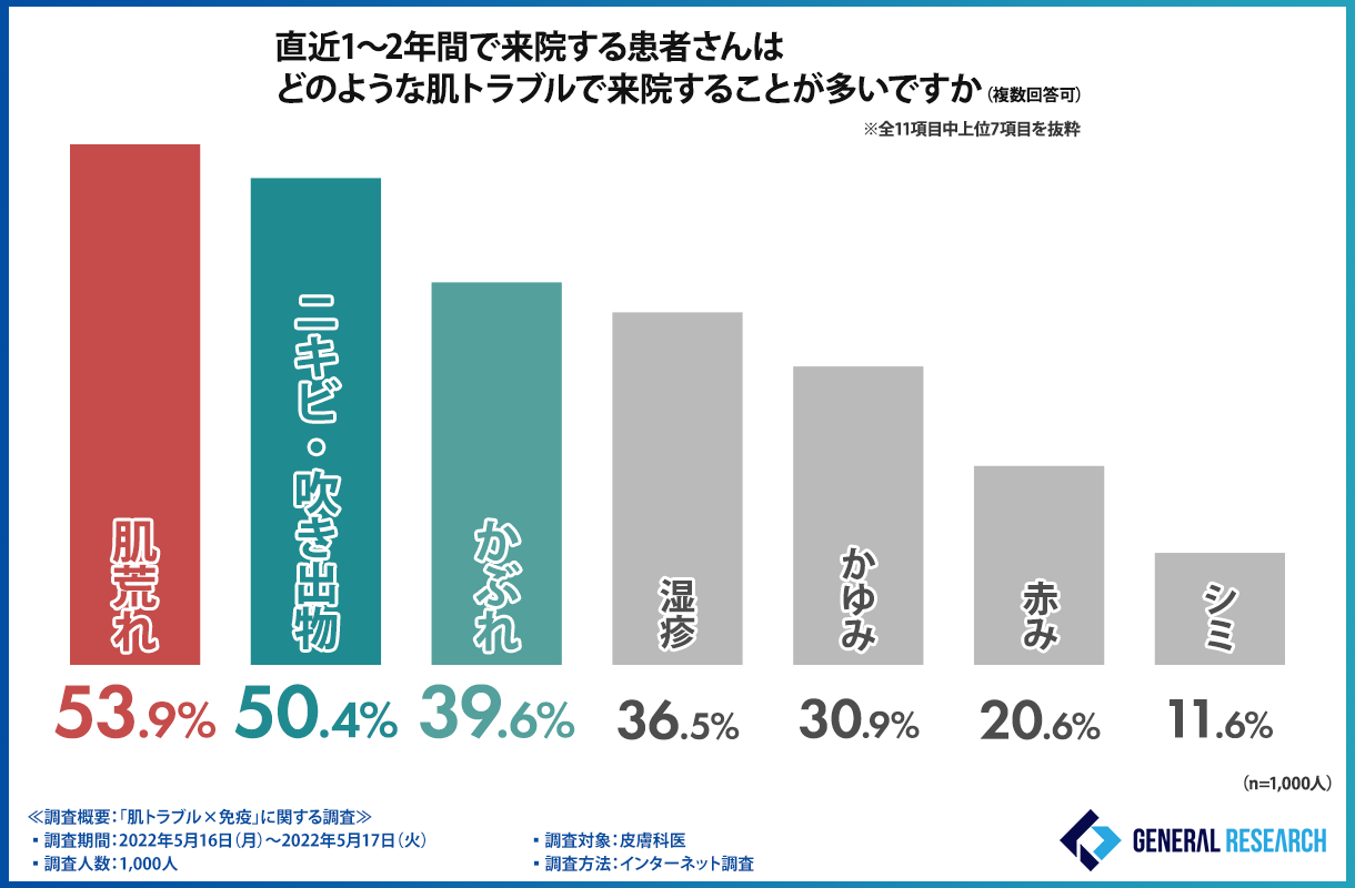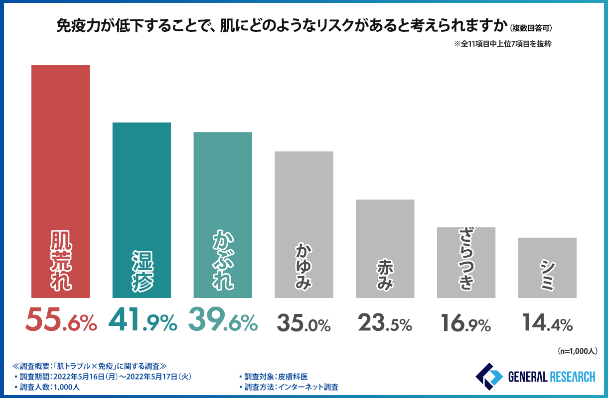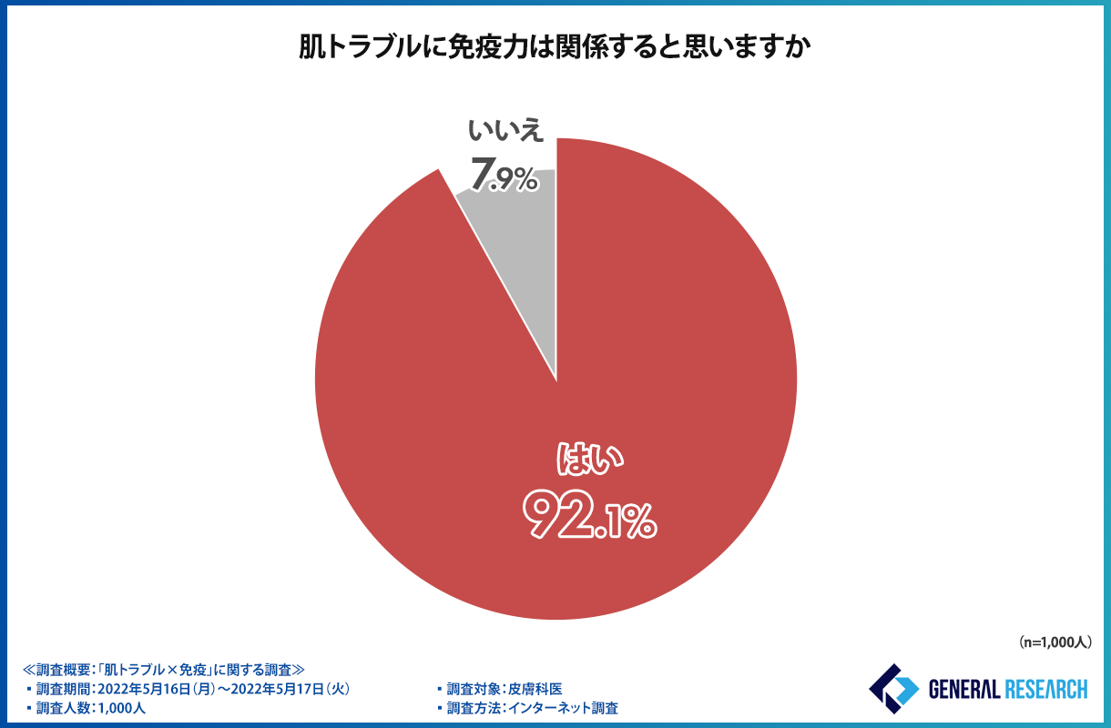 そこで、ゼネラルリサーチ株式会社では、皮膚科医を対象に、「肌トラブル×免疫」に関する調査を実施しました。