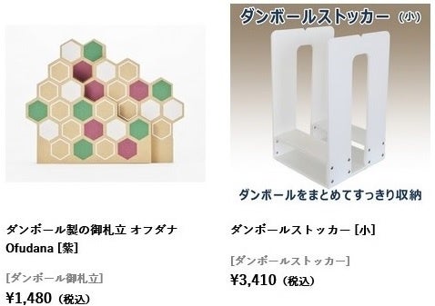 - ダンボール雑貨…御札立(全3種)、ダンボールストッカー(全2種)、ゴミ箱