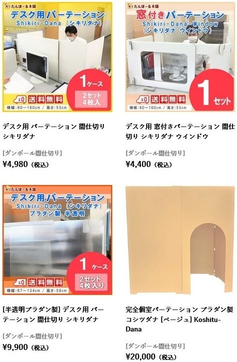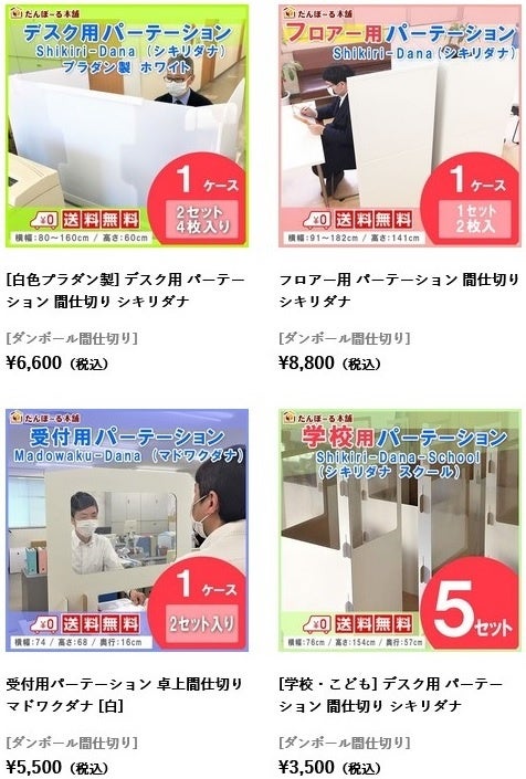 - その他…フェイスシールドメガネタイプ(全4種)、子供用フェイスシールド(全4種)、開閉式フェイスシールド(全4種)、2Wayフェイスシールド、ソーシャルディスタンステープ(全8種)