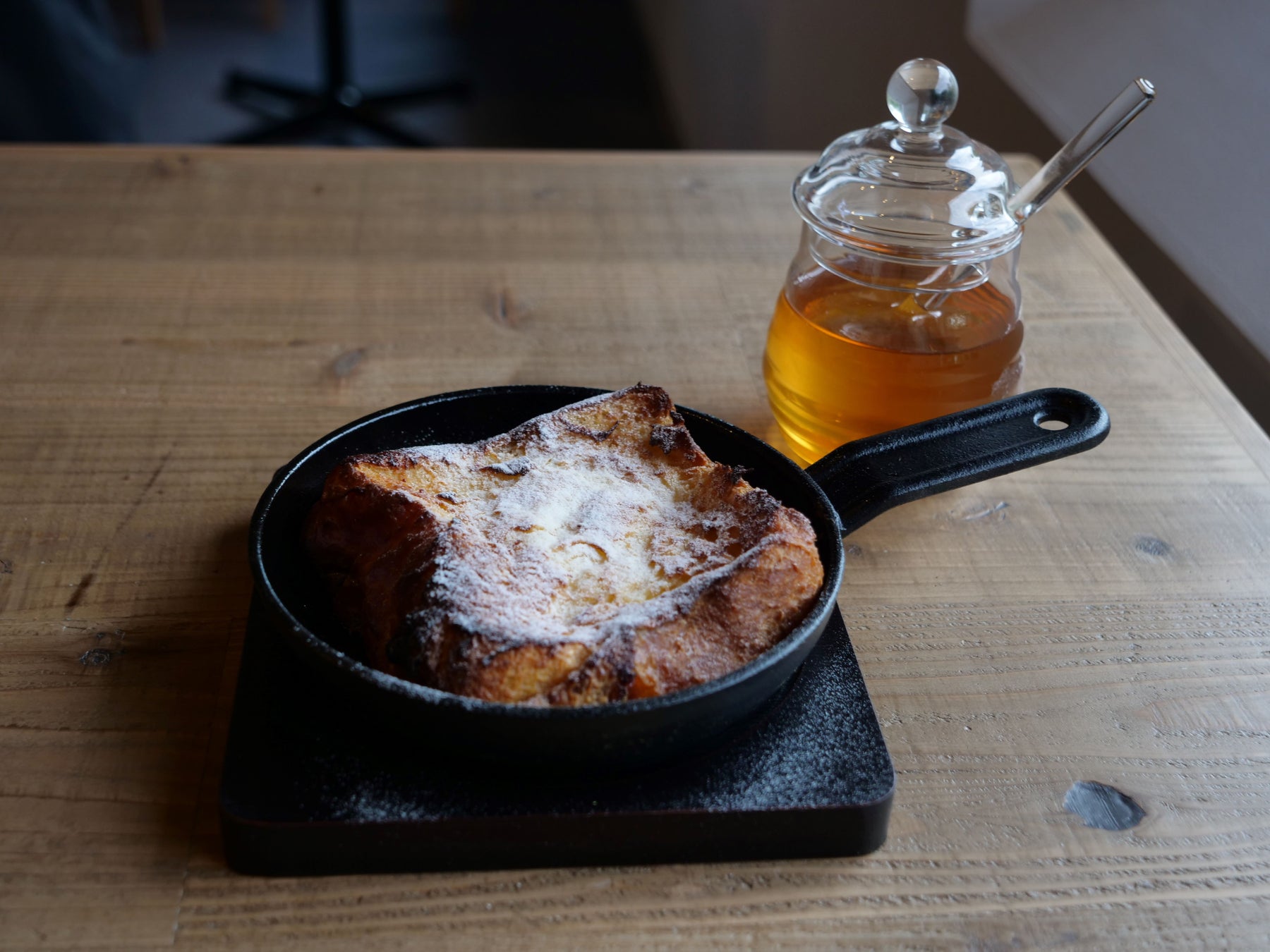 鉄板フレンチトーストはプレーンと抹茶の2種を用意しました。