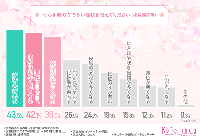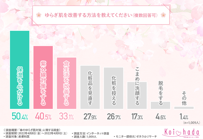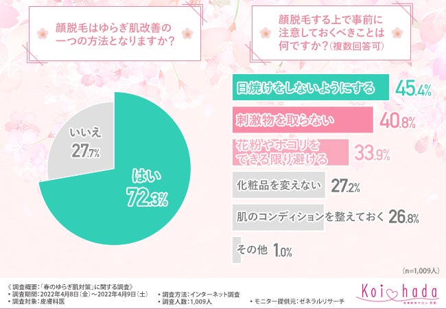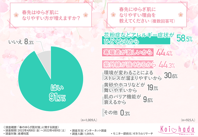 そこで今回、脱毛サロン「恋肌」(https://www.koi-hada.jp/lplj_lv/lp03/?refmedia=178)は、皮膚科医を対象に、「春のゆらぎ肌対策」に関する調査を実施しました。