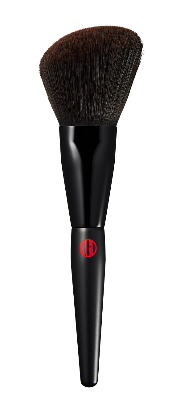 ラウンドカットされた斜め型のブラシ。豊かな毛量でパウダーをたっぷり含み、1回のストロークで瞬時に肌と一体化。高級動物毛のようなやわらかでなめらかな肌あたりで、贅沢な使用感を実現。