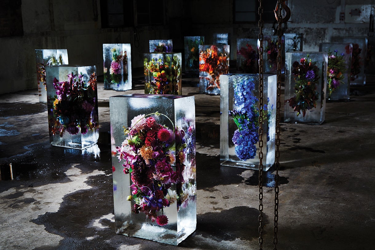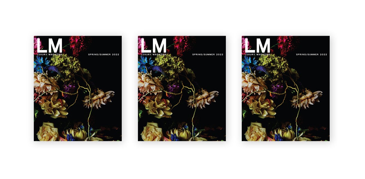 ラグジュアリーマガジンの表紙には毎号象徴的なアーティストの作品を採用しています。今号の表紙では日本のボタニカルアーティスト、東信の作品を掲載。彼が作り出す世界は、本号のテーマを鮮烈に印象づけるビジュアルを持ち合わせており、花を凍らせたり、海の底に沈めたりすることで、生命の力強さとはかなさを表現しています。彼の独特のアートは、彼をよく知る幼馴染であり写真家の椎木俊介によってカメラに捉えられています。