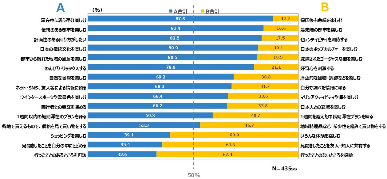 Q. 今後、訪日旅行の際に、下記の項目について、あなたの気持ちに最も近いものをそれぞれ一つずつお答えください。(それぞれ単一回答)