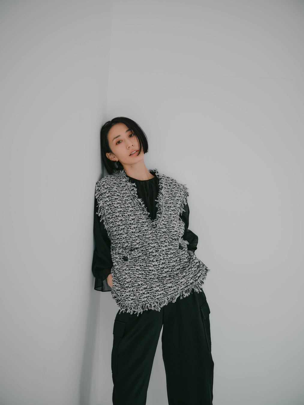 2.着映え力も着回し力も抜群!ツイード風ジレでコンサバスタイルを刷新