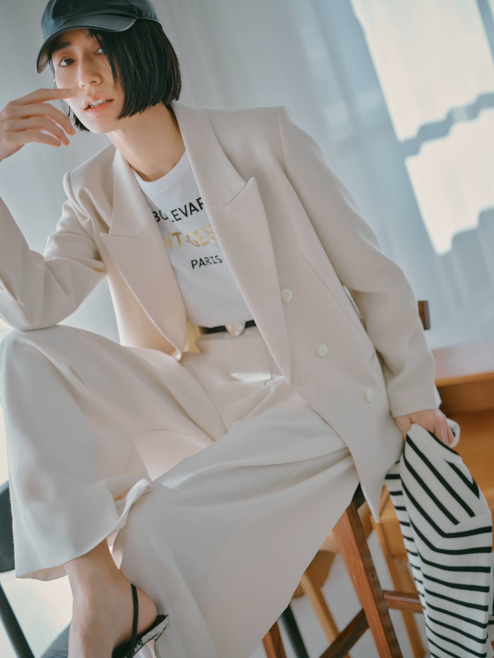 ラフなスタイルに、あえてジャケットを羽織るミックスコーディネートがこの春のトレンド。リネン混素材でリラックス感のあるジャケットは、まさにそんな着こなしにぴったりです。スタイリングで挑戦するなら、カラーは品よくアイボリートーンでまとめて、気負わず着こなしてみて。