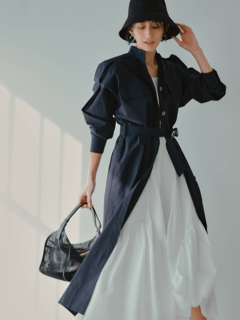 春、真っ先に手に入れたいのは、新しい季節のコーディネートを盛り上げてくれる良き相棒アウター。大定番アイテム、トレンチコートを旬のショート丈に仕立てた一着なら、着慣れた親近感はそのままに一気に気分を更新! シアー素材のプルオーバーをレイヤードして、更にトレンド感アップを狙います。