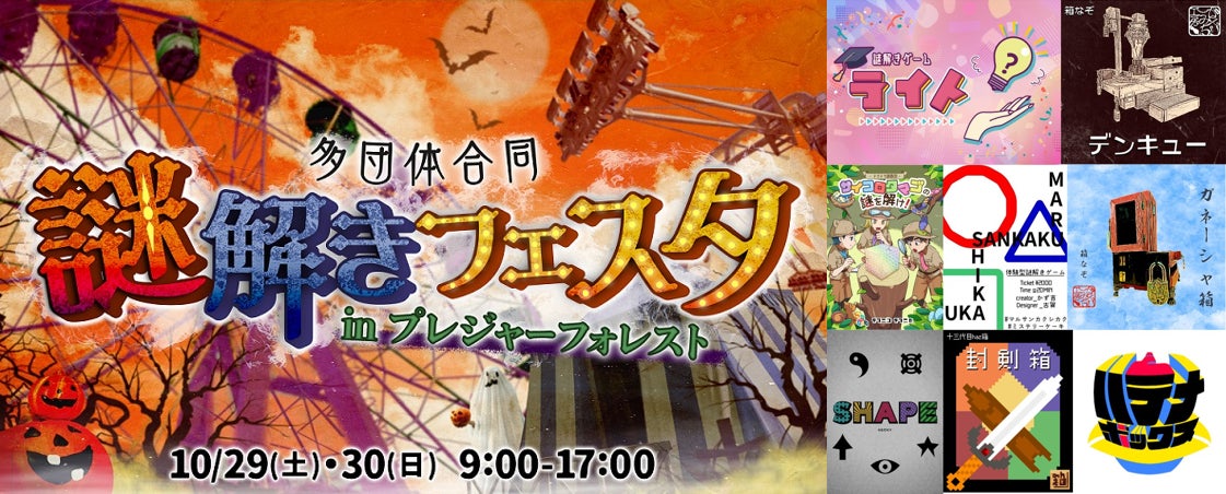 当日はプレジャーフォレストでもハロウィンイベントを開催しており、謎解きファンのみならず、子供から大人までが楽しめるイベントとなっています。宝探しや謎解きが好きな方、イベントが好きな方、日常に刺激が足りない方など、皆様のご参加お待ちしております。