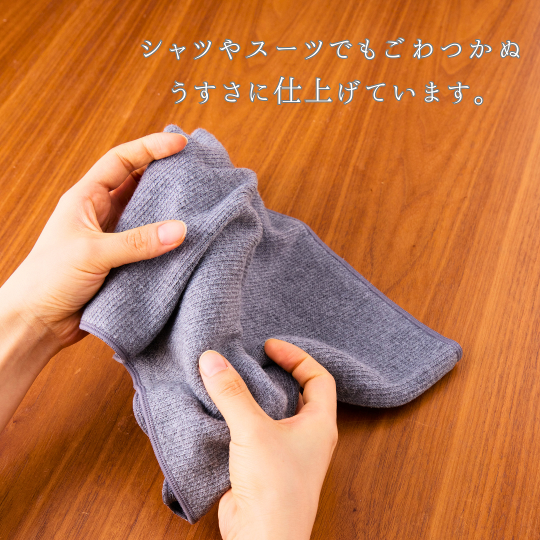 この2年ほどで問い合わせが増えた《男性用はらまき》。女性用をただ大きく編んだだけでは何も芸がなく、面白くない。紀州備長炭繊維を使用し、消臭、通気性を強化しスーツやシャツの下でもごわつかぬうすさに。もう昔の腹巻きのイメージは捨ててください。