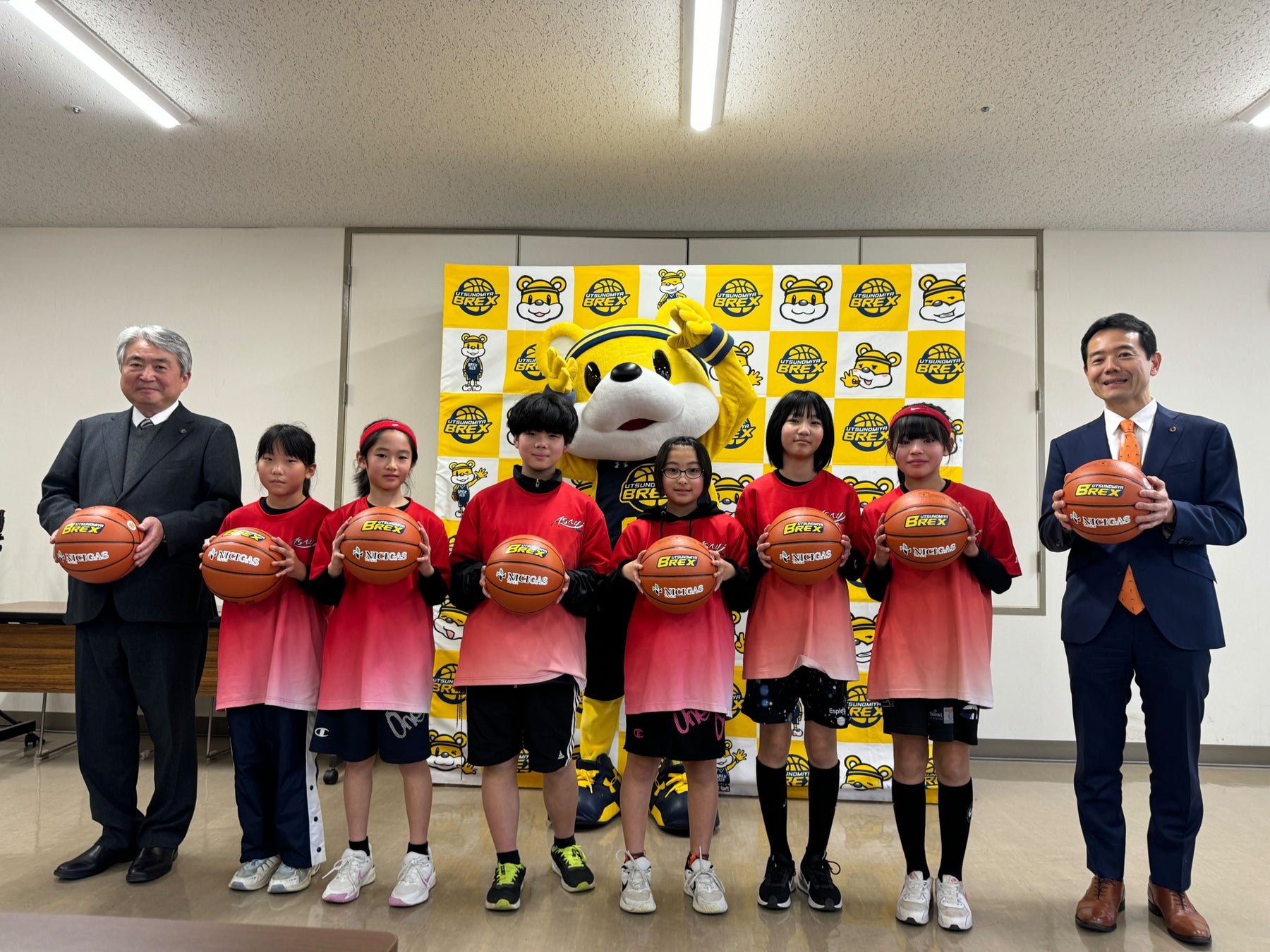 本活動では、ブレックスのオフィシャルスポンサーである日本瓦斯株式会社(ニチガス)が BREX withの活動に協賛し、栃木県内のミニバスクラブ10クラブにバスケットボールを5球ずつ寄贈しました。