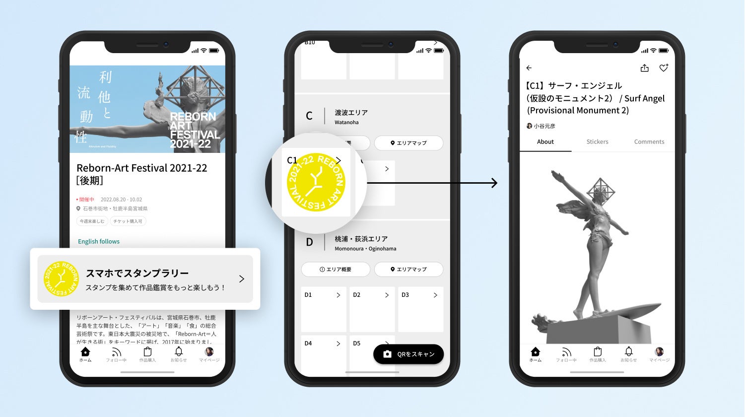スタンプラリー機能をArtStickerが提供開始。第一弾として「Reborn-Art Festival 2021-22[後期]」に導入。