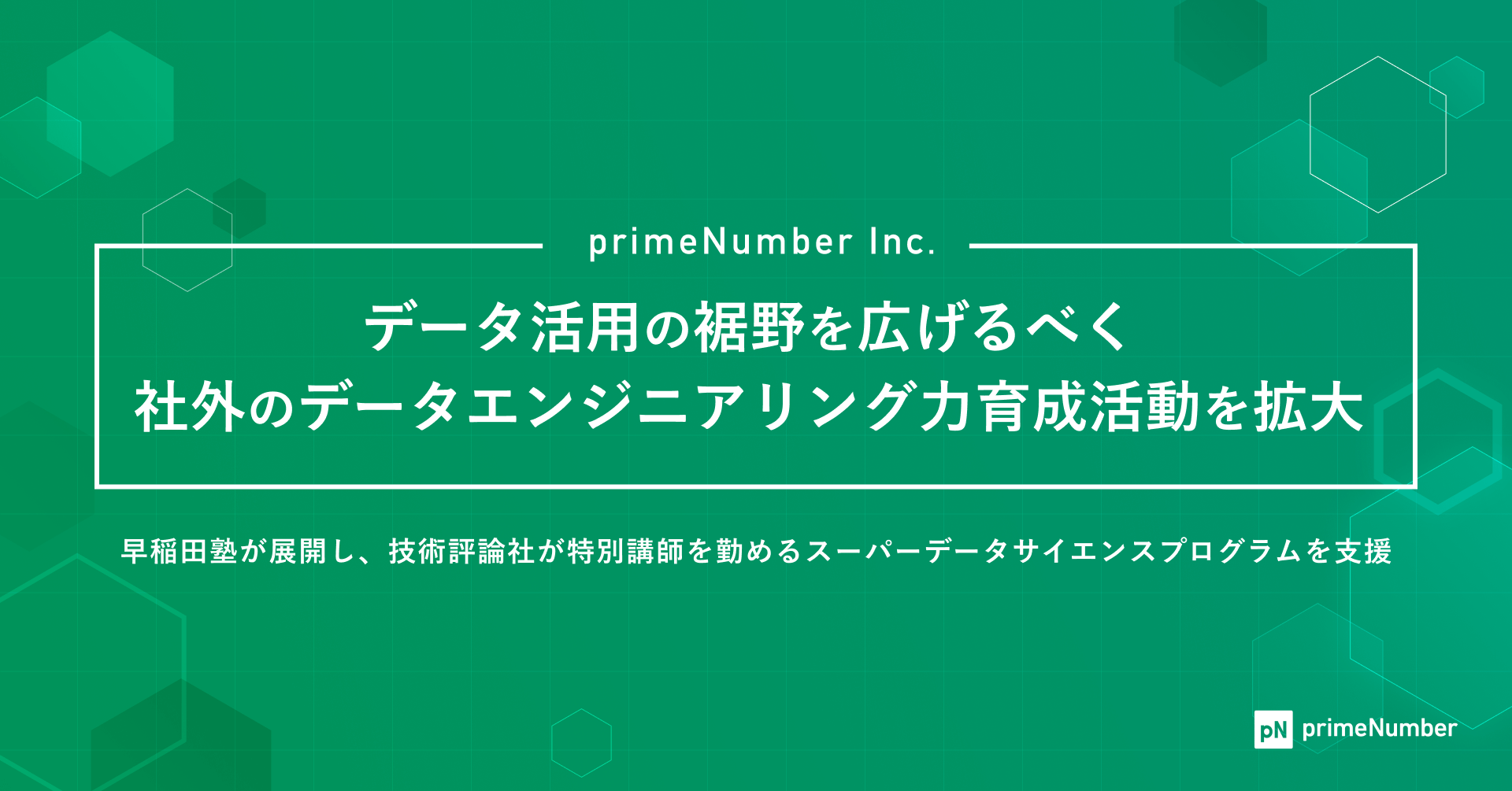 primeNumber社、データ活用の裾野を広げるべく、社外のデータエンジニアリング力育成活動を拡大 早稲田塾が展開し、技術評論社が特別講師を勤めるスーパーデータサイエンスプログラムを支援