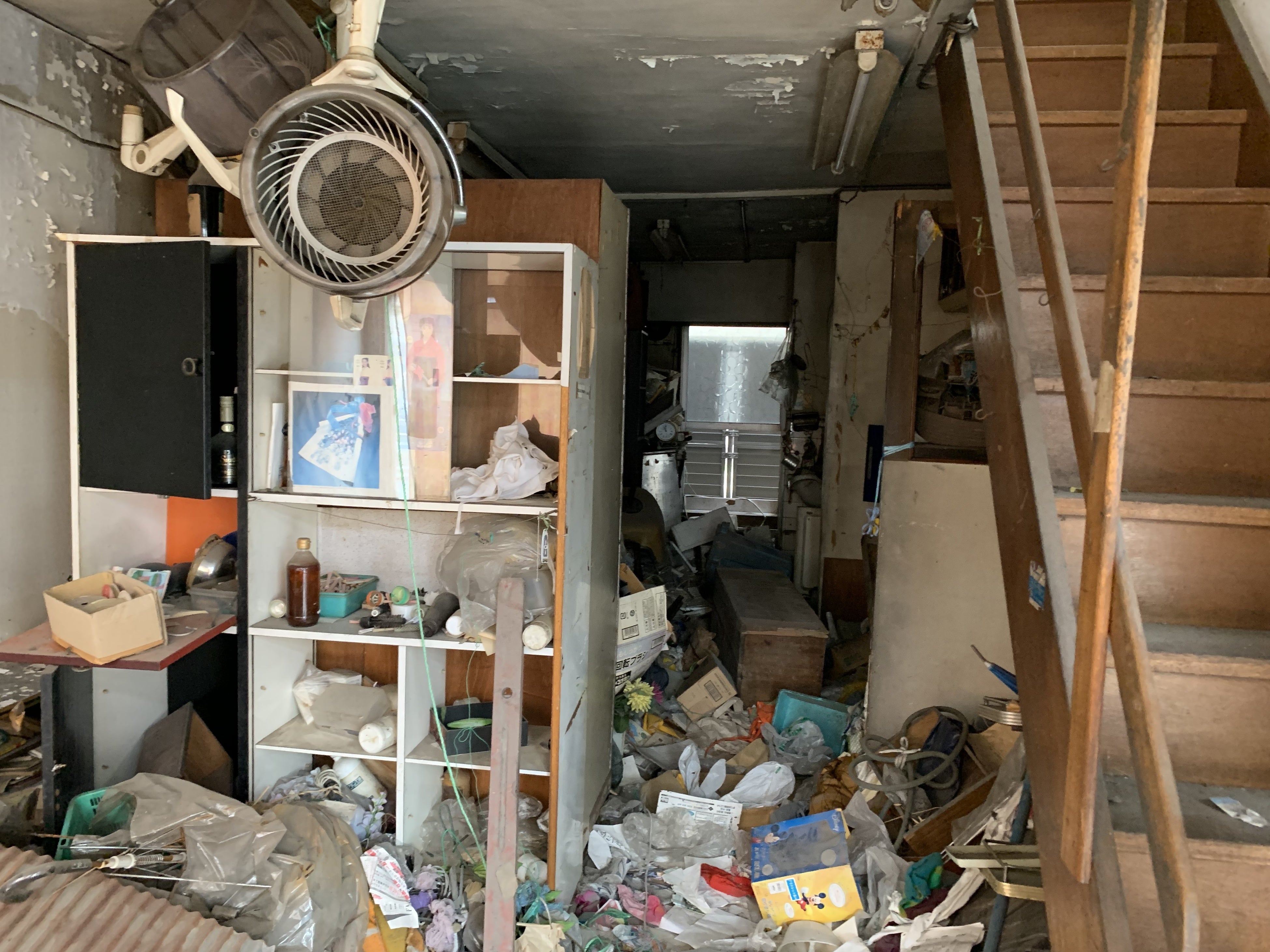 <建物の1階:残置物が散乱した状態>