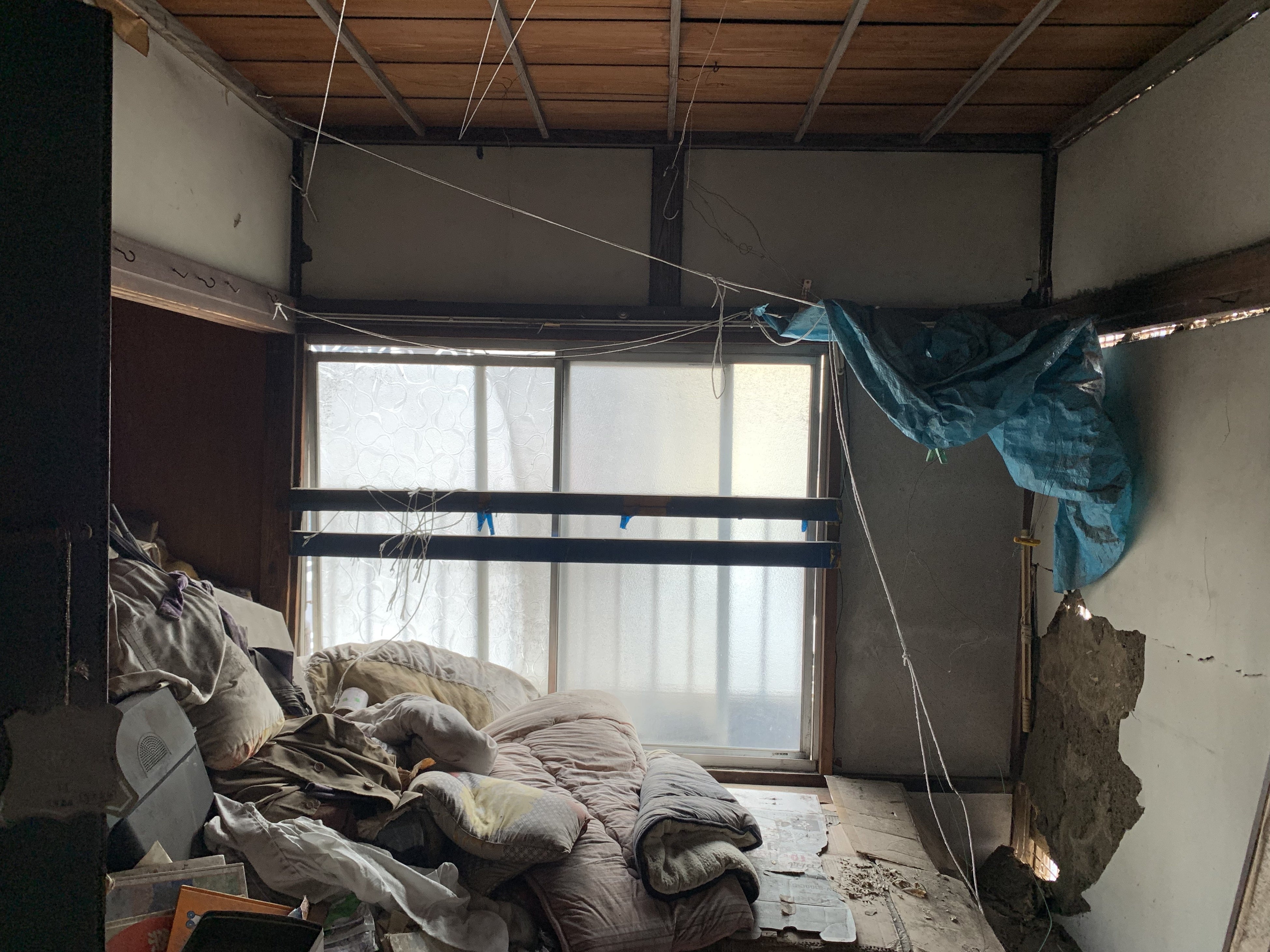 <建物の2階:壁が崩れ、外が見える状態>