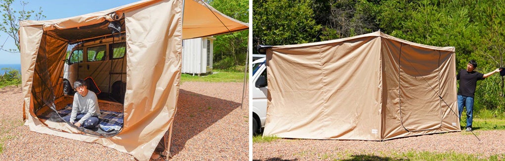 また専用の蚊帳とサイドシート、ドア付きシートを組み合わせることで、2ルーム化することも可能で、様々なアウトドアシーンに活用することができます。