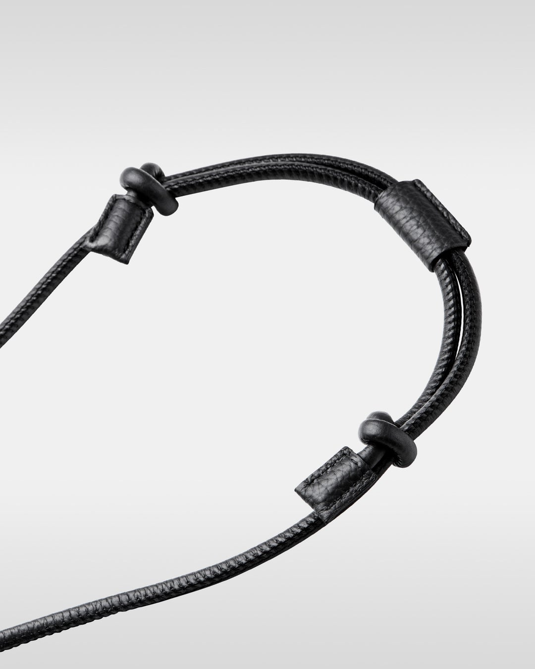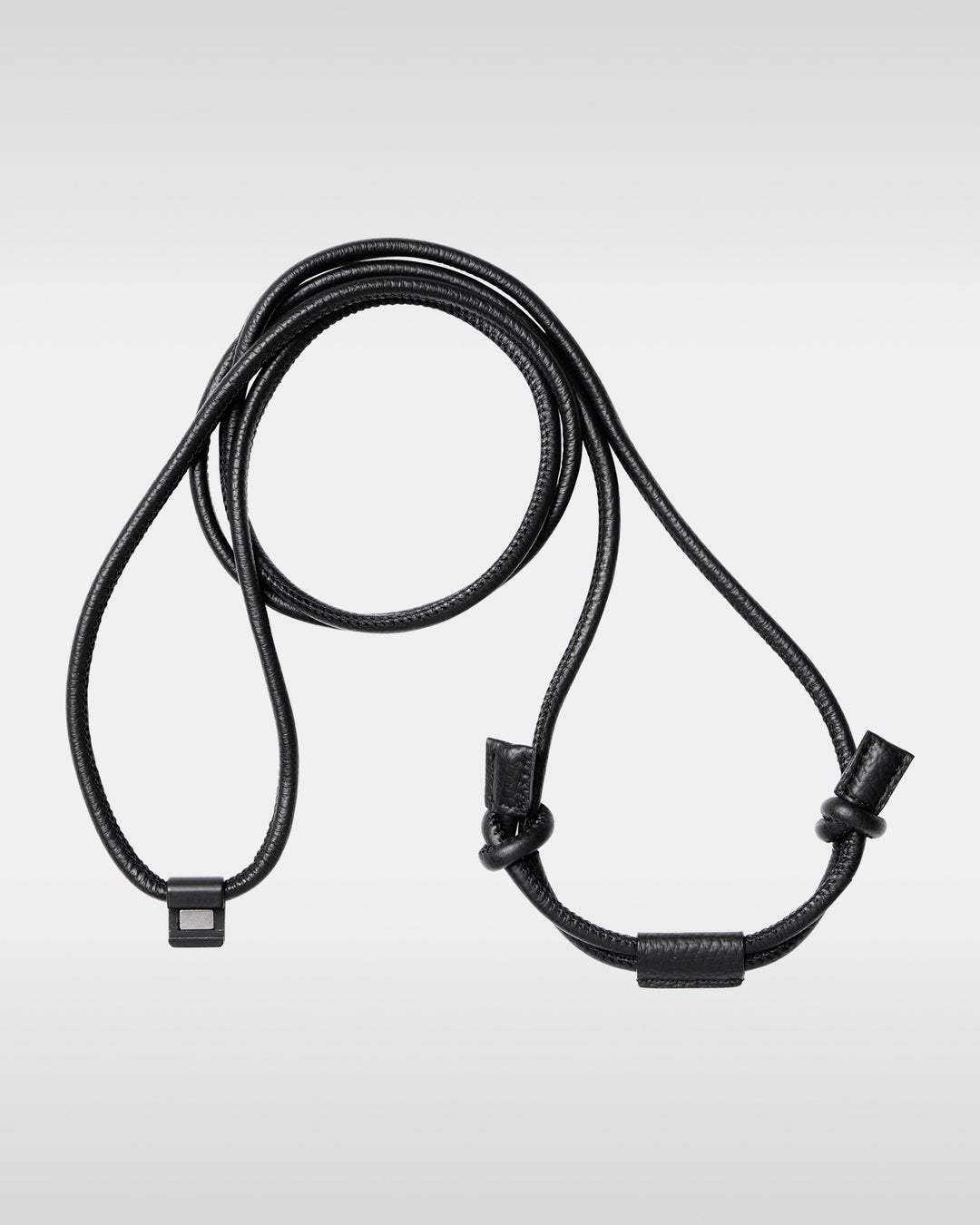 丸みのある革紐デザインはそのままに、両端を引くだけでスマートに長さ調節できる機構を追加。身長や体格を問わず快適に使用できます。