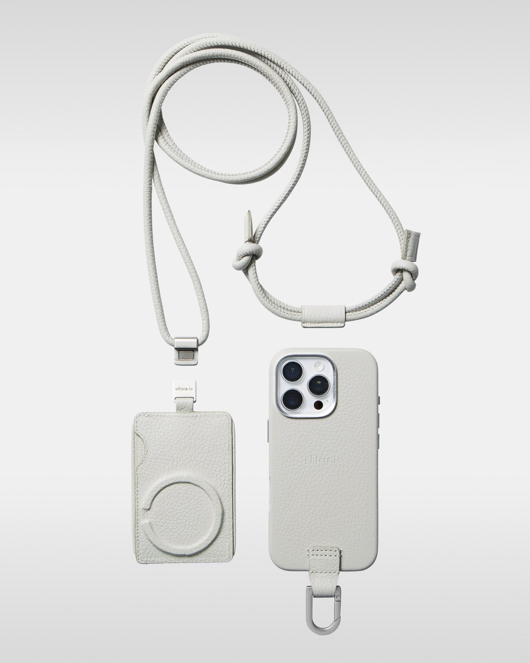 今回のアップデートでは、objcts.ioの定番スマホショルダーを、機能面と審美面の両方からさらに洗練。使い手のライフスタイルに合わせ、より自由な身につけ方と美しい佇まいを実現しました。カラーはブラックとマシュマロの2色を展開。今後はカラーラインナップの拡充も予定しています。