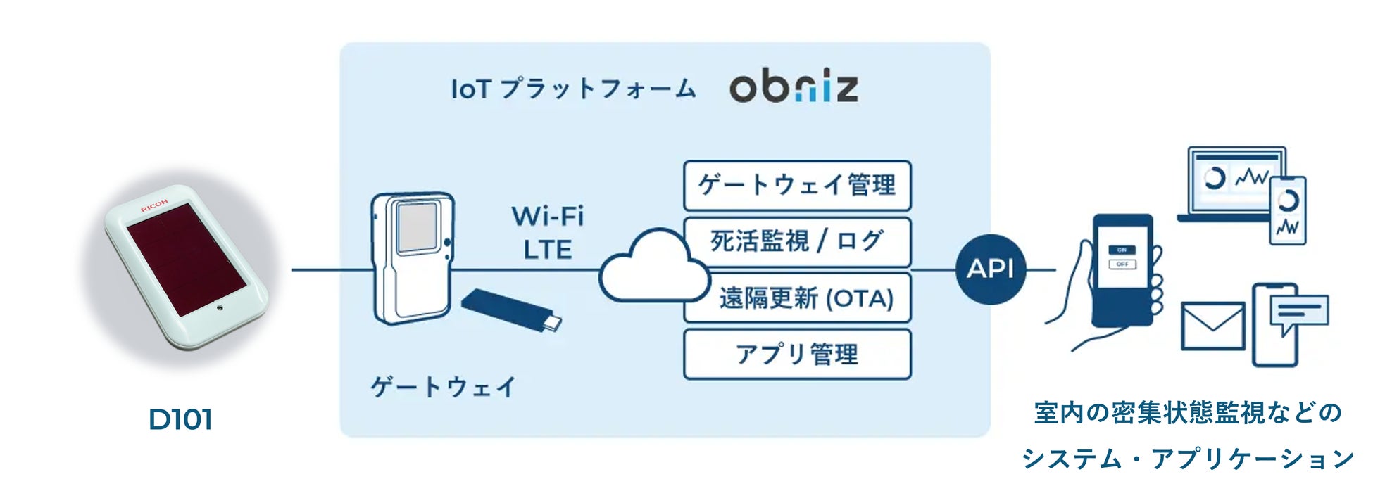 IoTプラットフォーム「obniz」、電気工事・電池交換不要のリコー製センサー「D201/D101」に連携