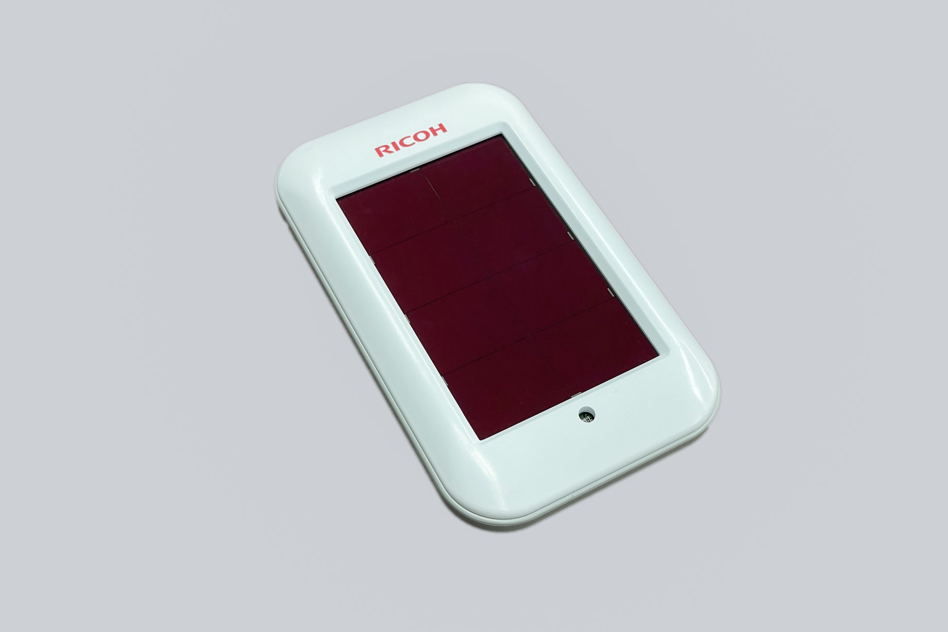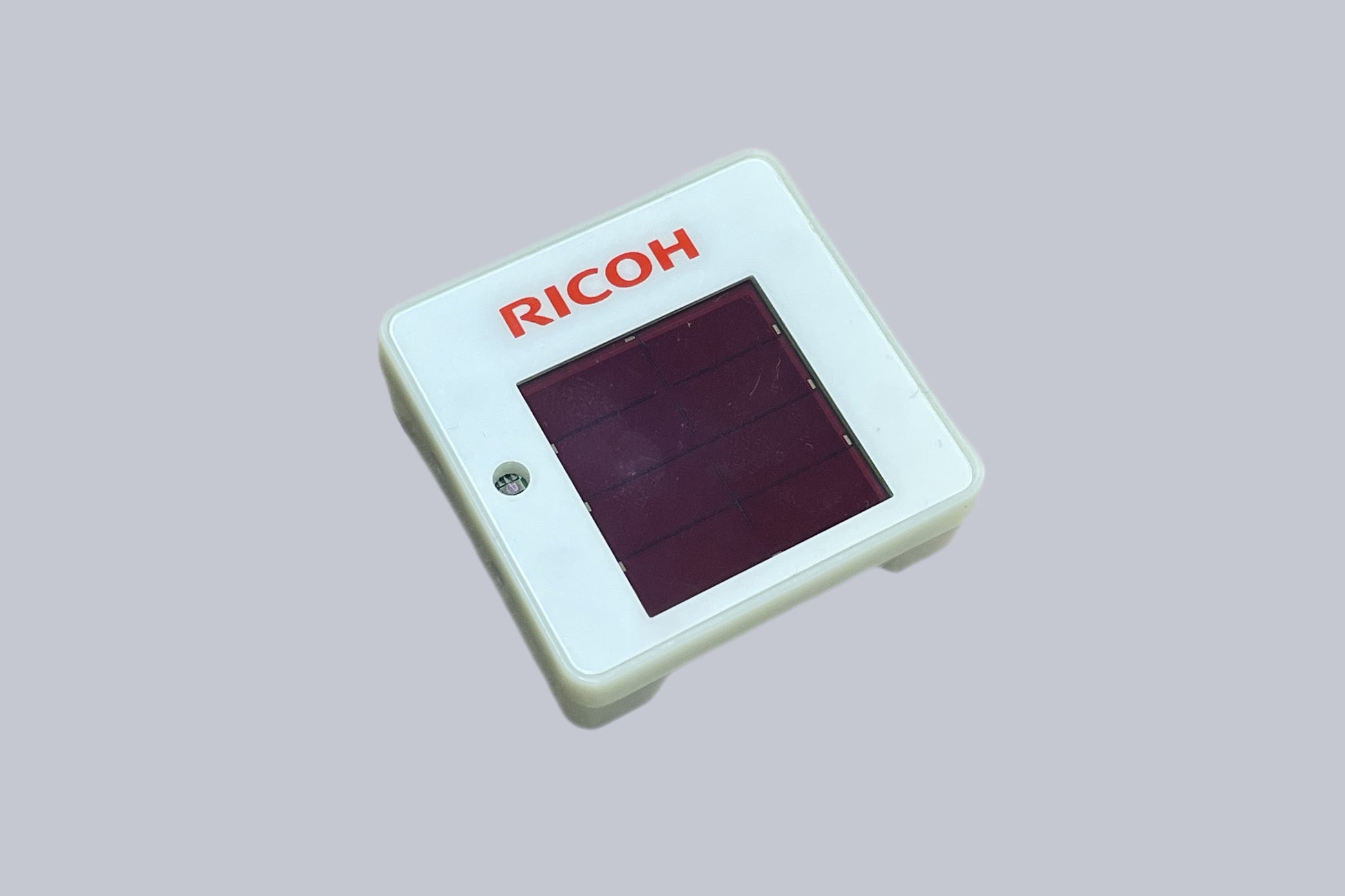 「RICOH EH 環境センサーD201」は、小型・メンテナンスフリーでマルチなセンシングに対応した環境センサーです。高い発電性能を持つ固体型色素増感太陽電池「RICOH EH DSSC」を搭載しており、電気工事・電池交換不要で利用できます。幅約7センチの超小型サイズながら、温度・湿度・照度・気圧・内蔵リチウムイオン電池の電圧をセンシングします。