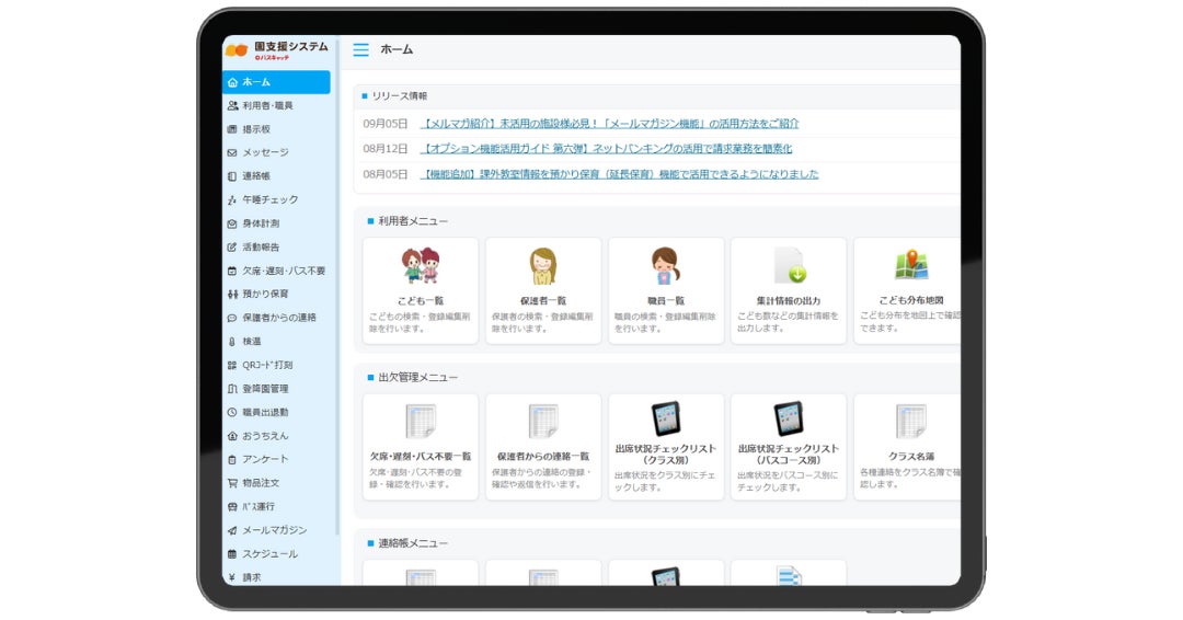 園支援システム+バスキャッチ、園向け管理画面をリニューアル