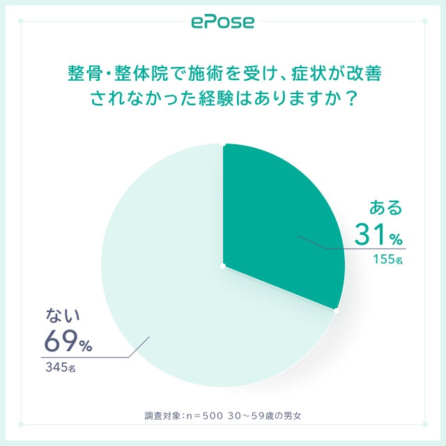 整骨院・整体院で症状が改善されなかった経験のある方が31%