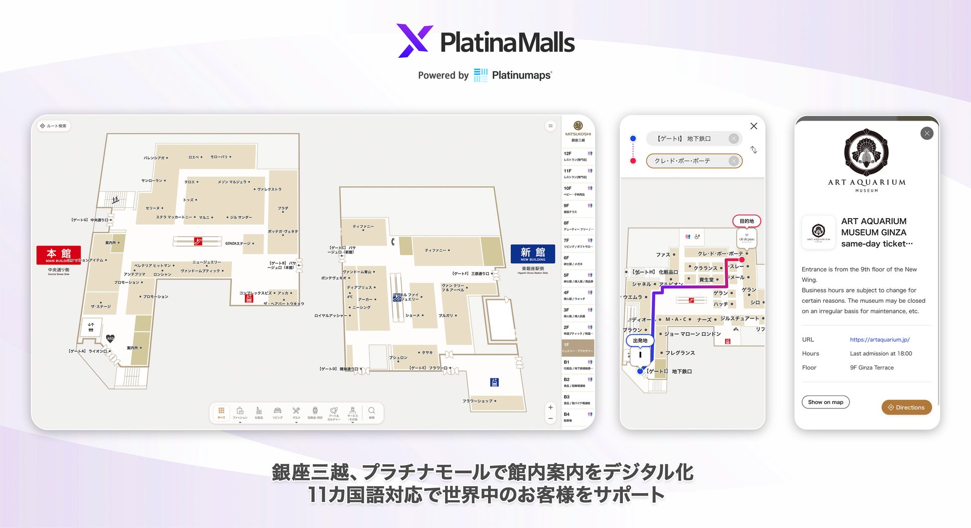 銀座三越が「プラチナモール」で館内案内をデジタル化。11ヶ国語対応で世界中のお客様をサポート