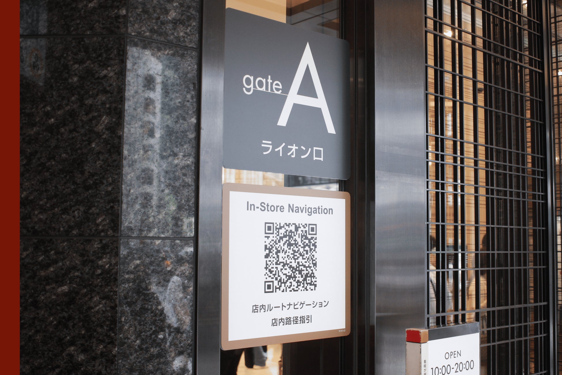 本館1階ライオン口に、デジタルマップを表示する2台のデジタルサイネージを設置。お客様からお問い合わせの多いスポットはサイネージに常時表示する仕組みとなっています。目的地をタッチして表示されたQRコードをスマートフォンで読み取ると、現在地からの経路案内が表示されるため、来店客自身のスマートフォンで目的地への経路を確認できるようになり、よりスムーズな館内移動が可能となりました。