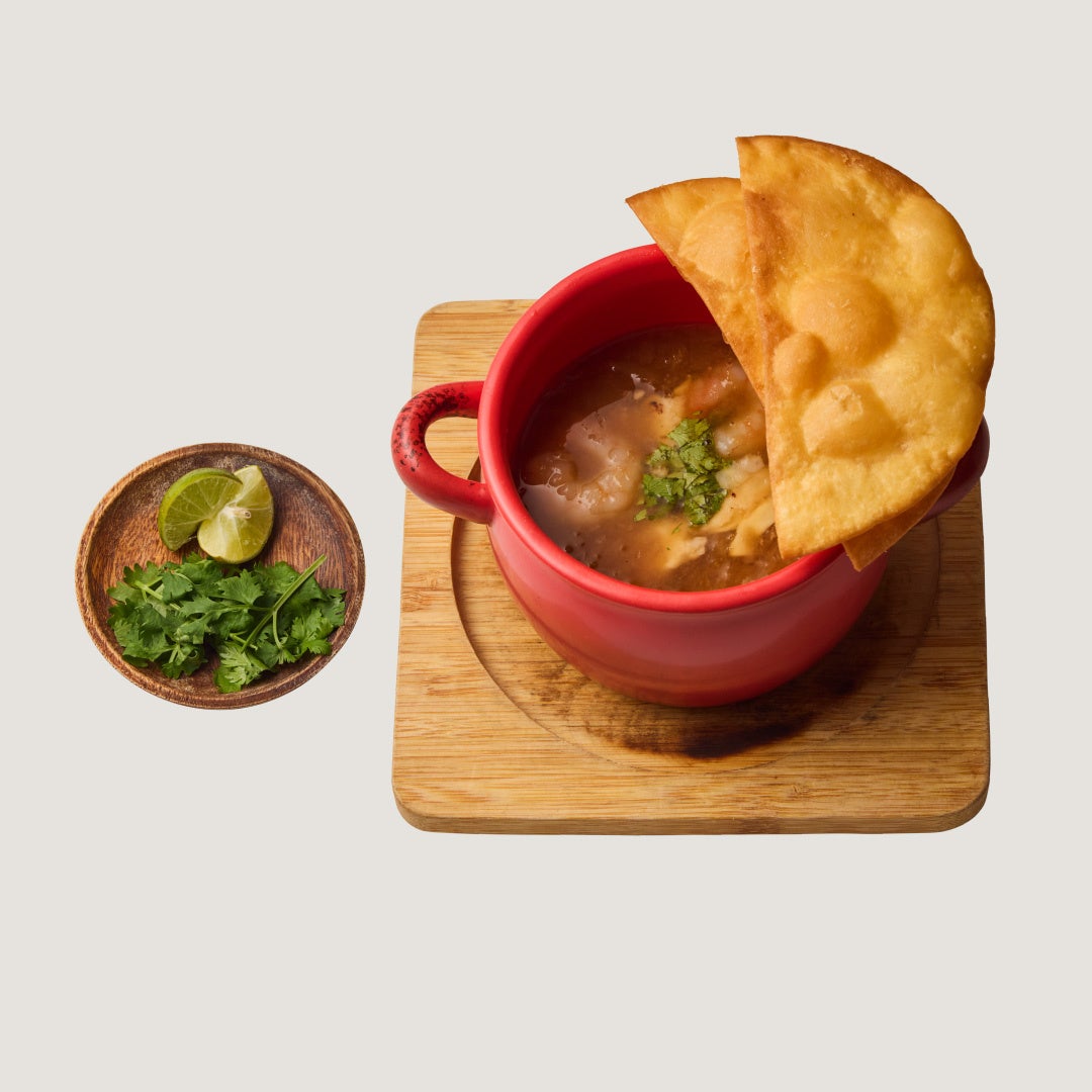 たっぷり煮込んだ玉ねぎの甘みが香ばしいチーズとベストマッチの熱々オニオングラタンスープ。サクサクのトルティーヤを崩して混ぜれば、メキシコテイストを感じる新しい美味しさに。体の芯から温まる一杯が、寒い冬の渋谷で頑張るあなたをやさしく包んでくれます。