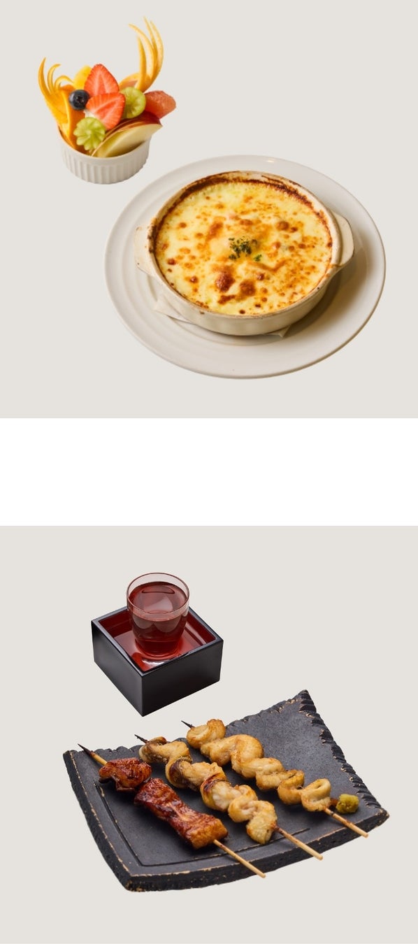 シーフード、またはチキンときのこの2種類から選べるドリアにミニパフェを添えたセット。濃厚なチーズが香ばしいご飯を包み、スプーンを入れると湯気とともに温もりが広がる冬にぴったりの一皿。食後は、季節の果実が彩るパフェで心もお腹も満たされる贅沢な時間を過ごせます。