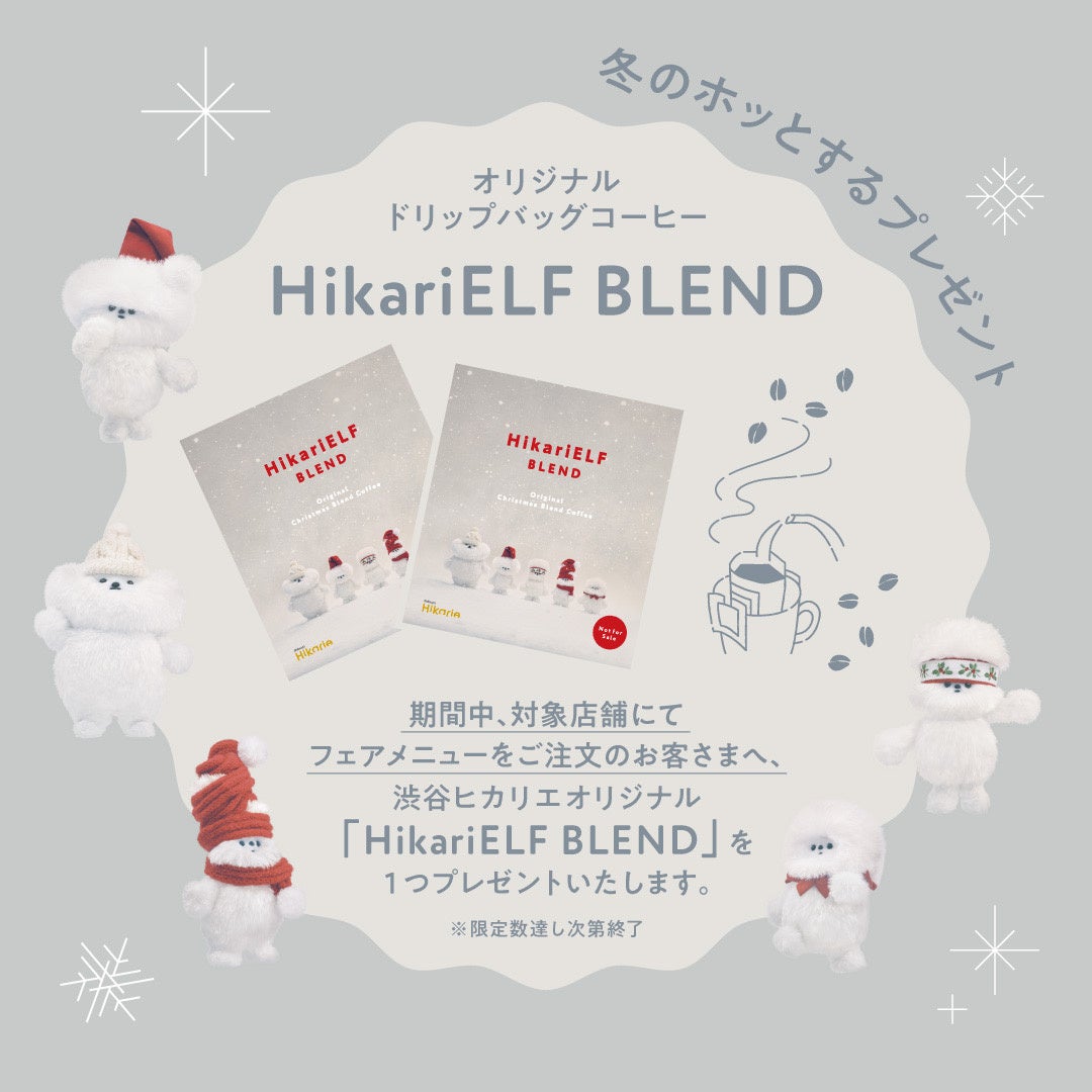 期間中、対象店舗にてフェアメニューをご注文のお客さまへ、渋谷ヒカリエオリジナル「HikariELF BLEND」ドリップバッグコーヒーを1つプレゼントします。 ※限定数達し次第終了