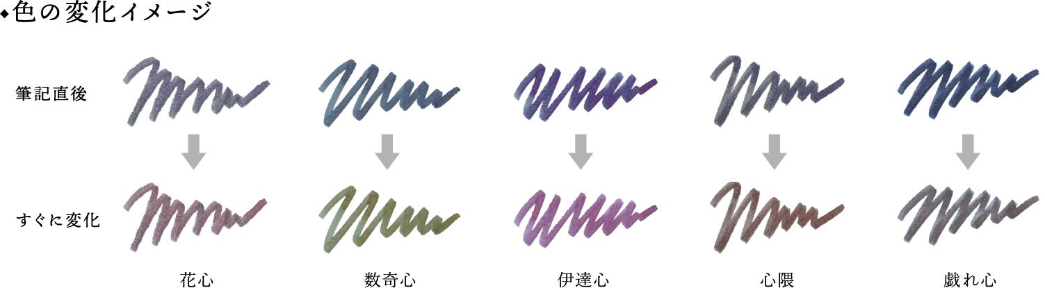 ゆらめくインクのシリーズ第2 弾は、すぐに色が変化する、濃い色、はっきりした色を多く採用しています。