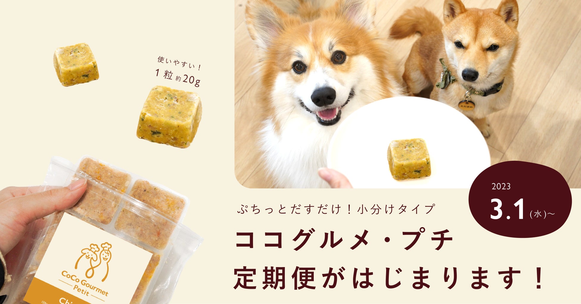 フレッシュペットフードNo.1・ココグルメの小分けタイプ「ココグルメ・プチ」の定期販売を3月1日から開始します。
