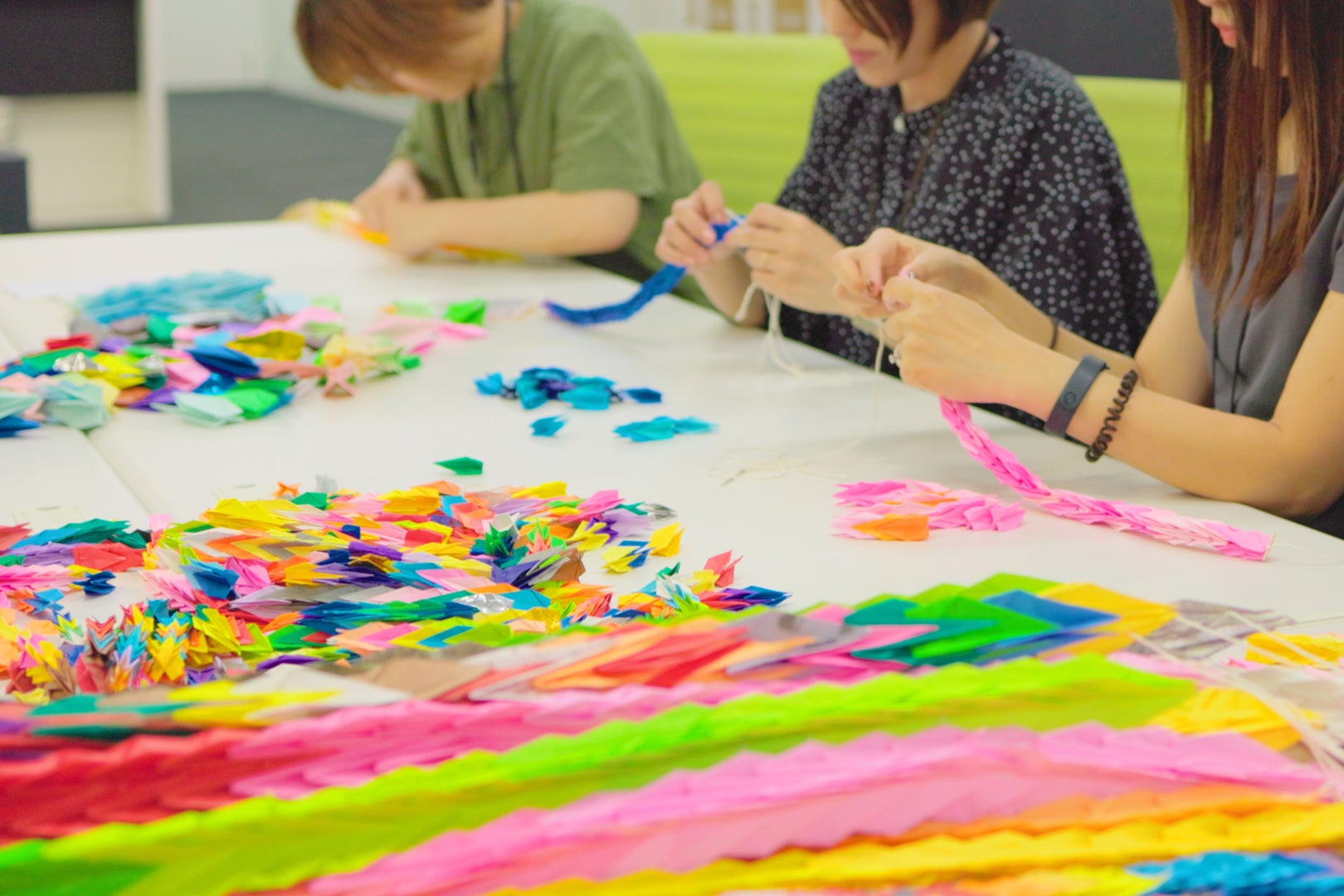 今年もたくさんの皆様にご協力いただき、心を込めて折っていただいたおりづるで「千羽鶴」を作成しました。
