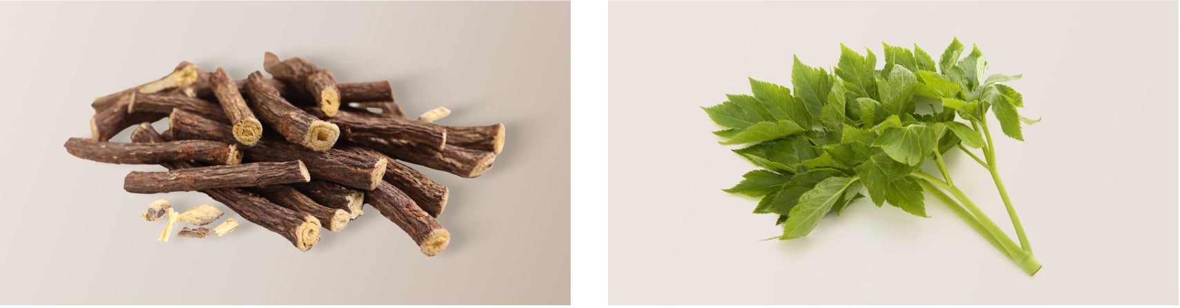 ・カンゾウ根エキス:4千年前から生薬として活用されている甘草の根から抽出したエキス。かゆみ・フケを抑えながら健康的な頭⽪環境を整え、うるおいで満たすことで乾燥を防ぎます。