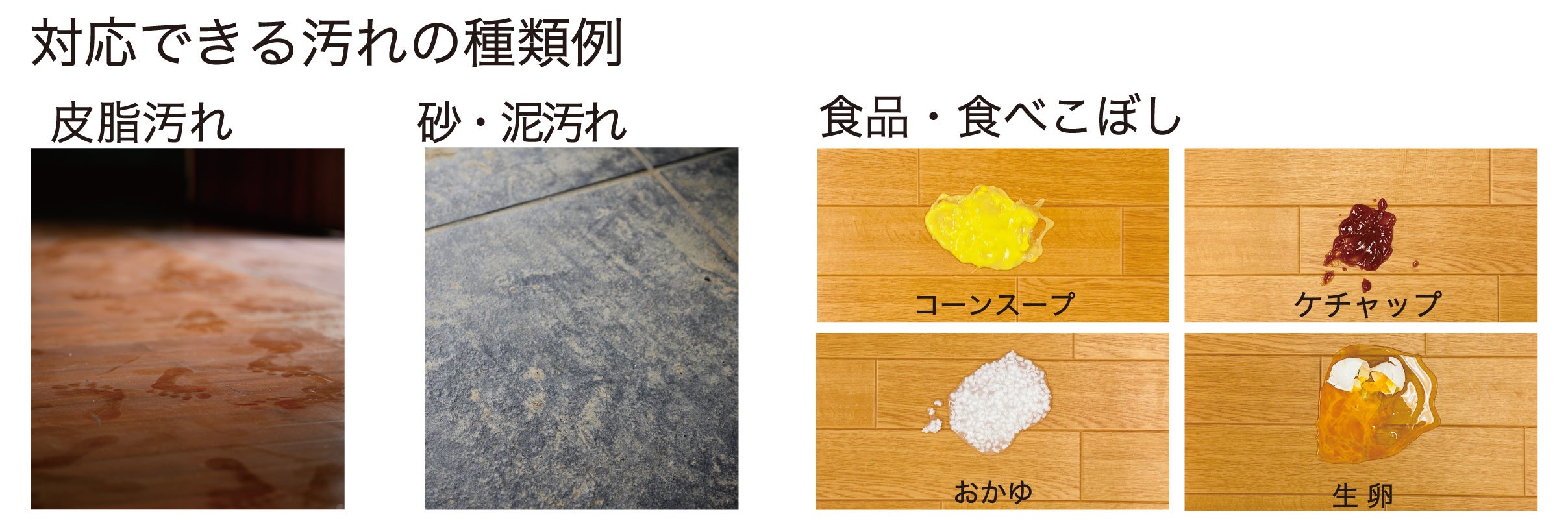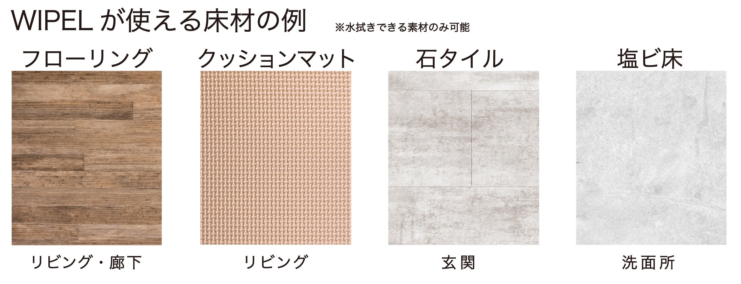 【WIPELが使える汚れと床材】