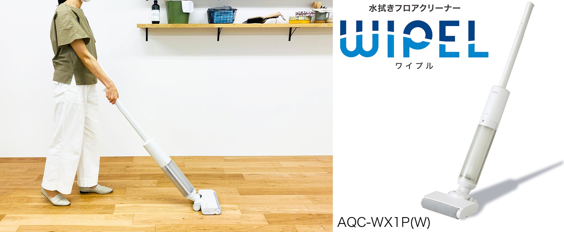 AQUAの「WIPEL(AQC-WX1P:以下、本商品)は、このような床の水拭きの大変さを解決するために開発いたしました。簡単な操作性や日本の住宅に合わせた設計で使いやすさを重視した、AQUAとして初めての水拭きフロアクリーナーです。