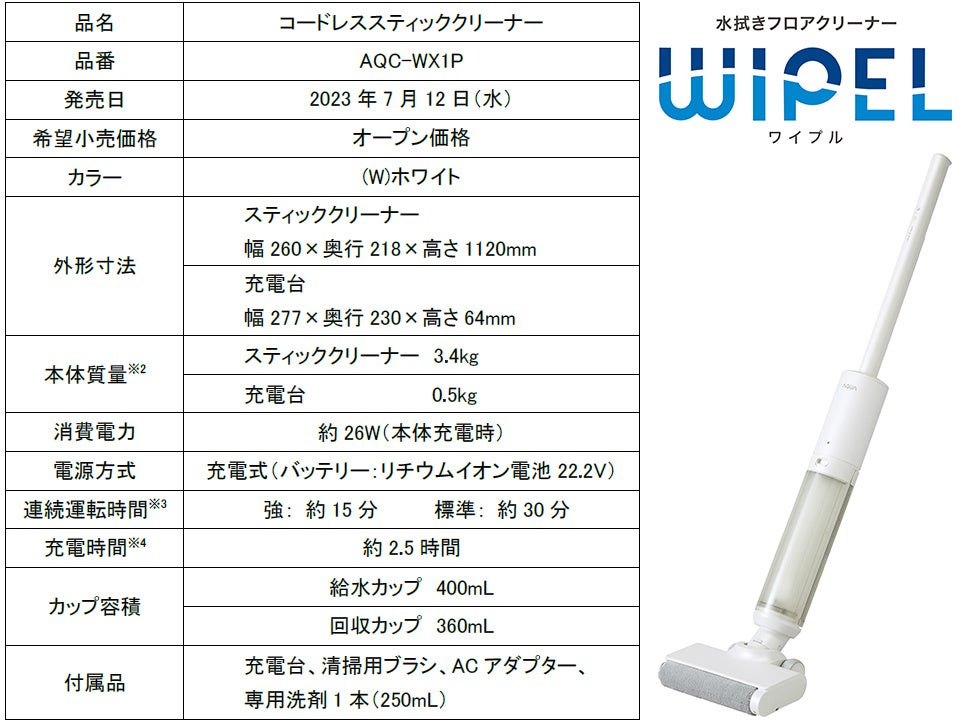 床を水拭きしながらホコリや食べこぼしも吸い上げる AQUA初の水拭きフロアクリーナー「WIPEL(ワイプル)」新発売